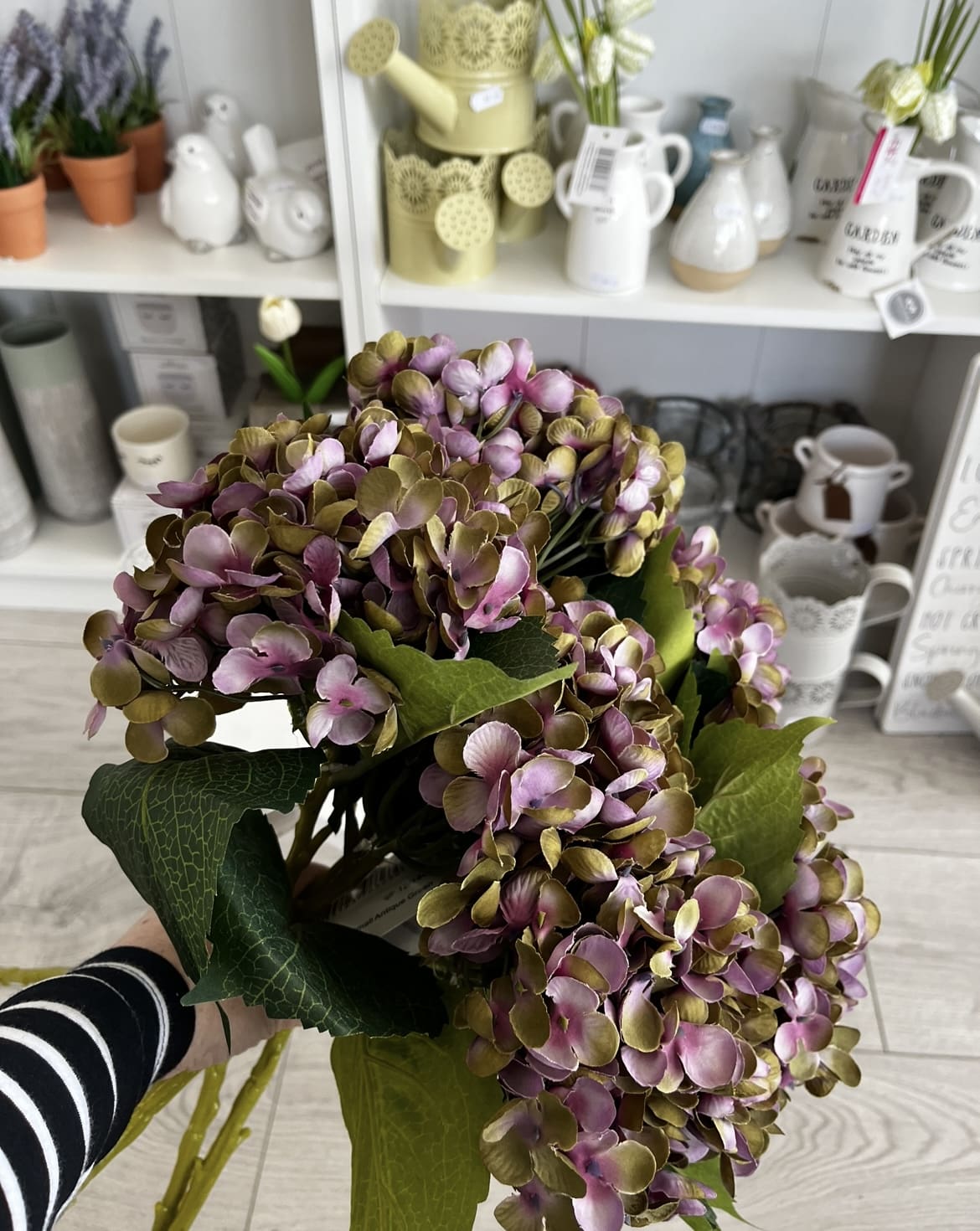 • Artificial Hydrangea Single Stem 52cm Antique green/purple