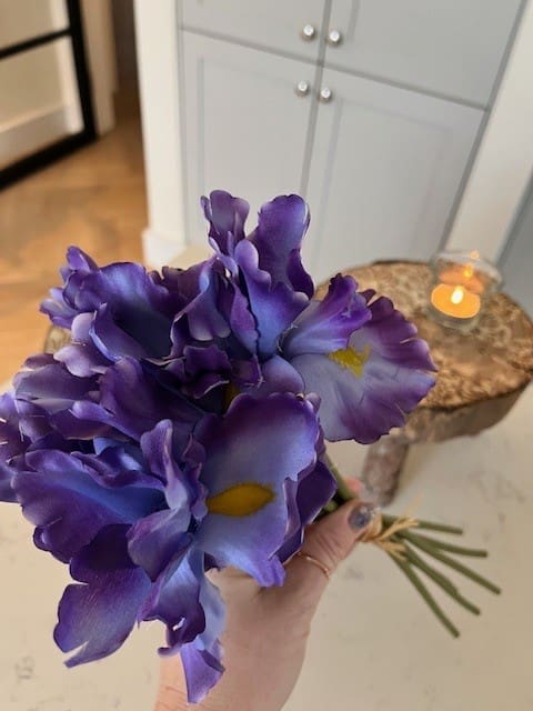 • Blue Purple Faux Silk Iris Bunch, 6 Stems, 40cm/ 15 Inches Tall