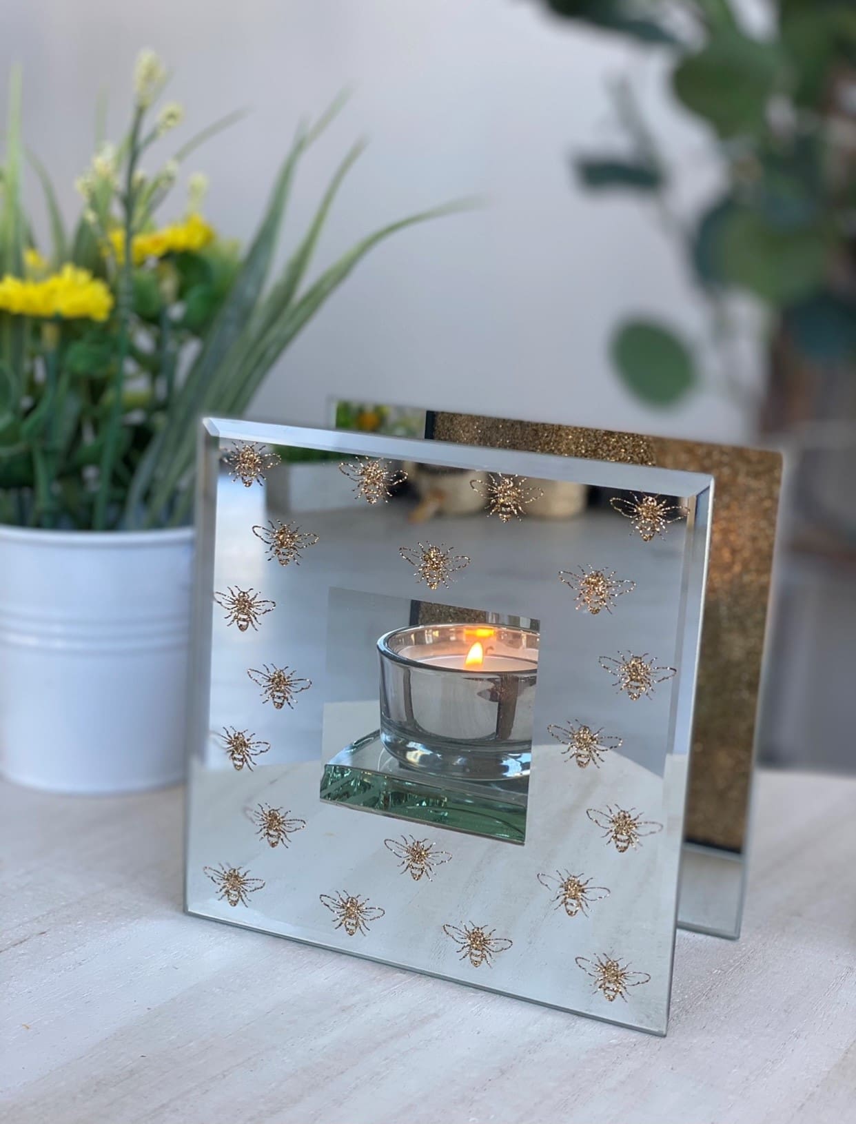 • GOLDEN BEE GLASS CANDLE HOLDER