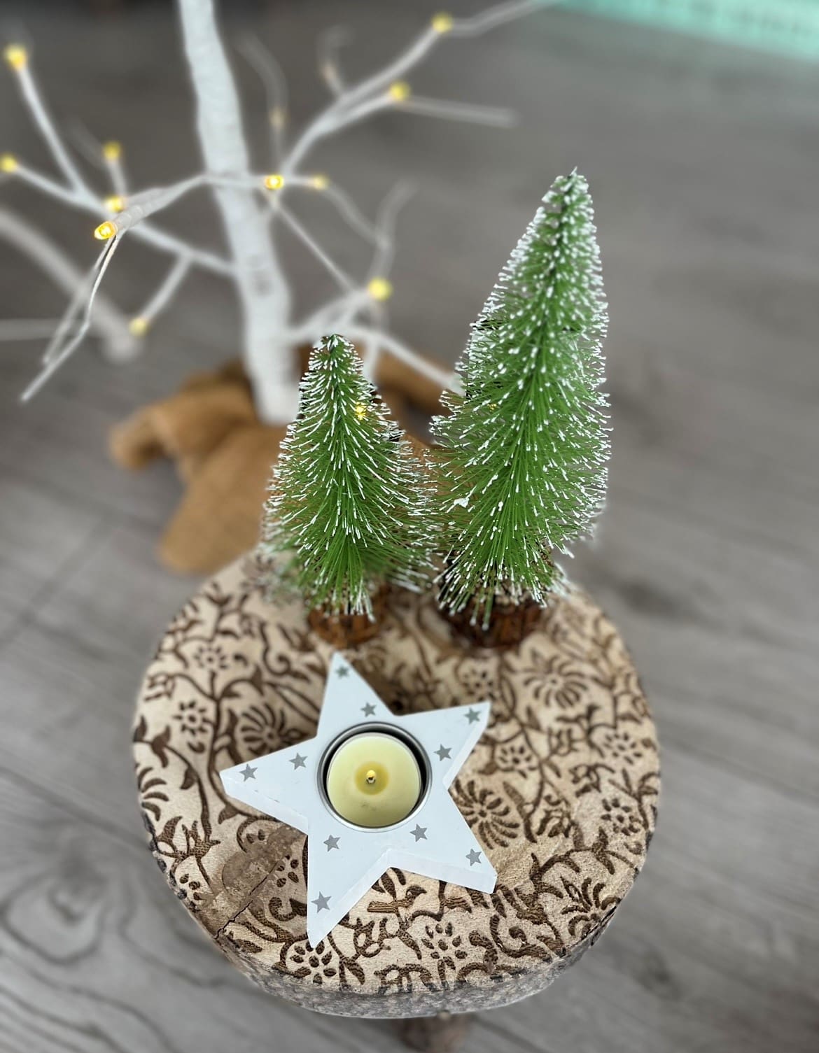 • WOODEN SNOWFLAKE TREE WITH STAR, 19CM