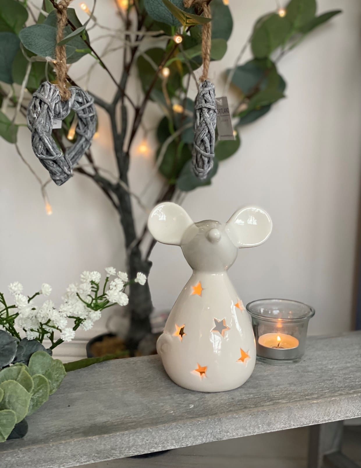 • WHITE STARRY MOUSE T-LIGHT HOLDER, 14.5CM
