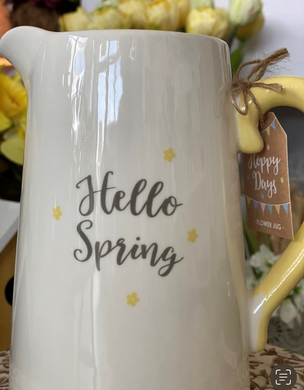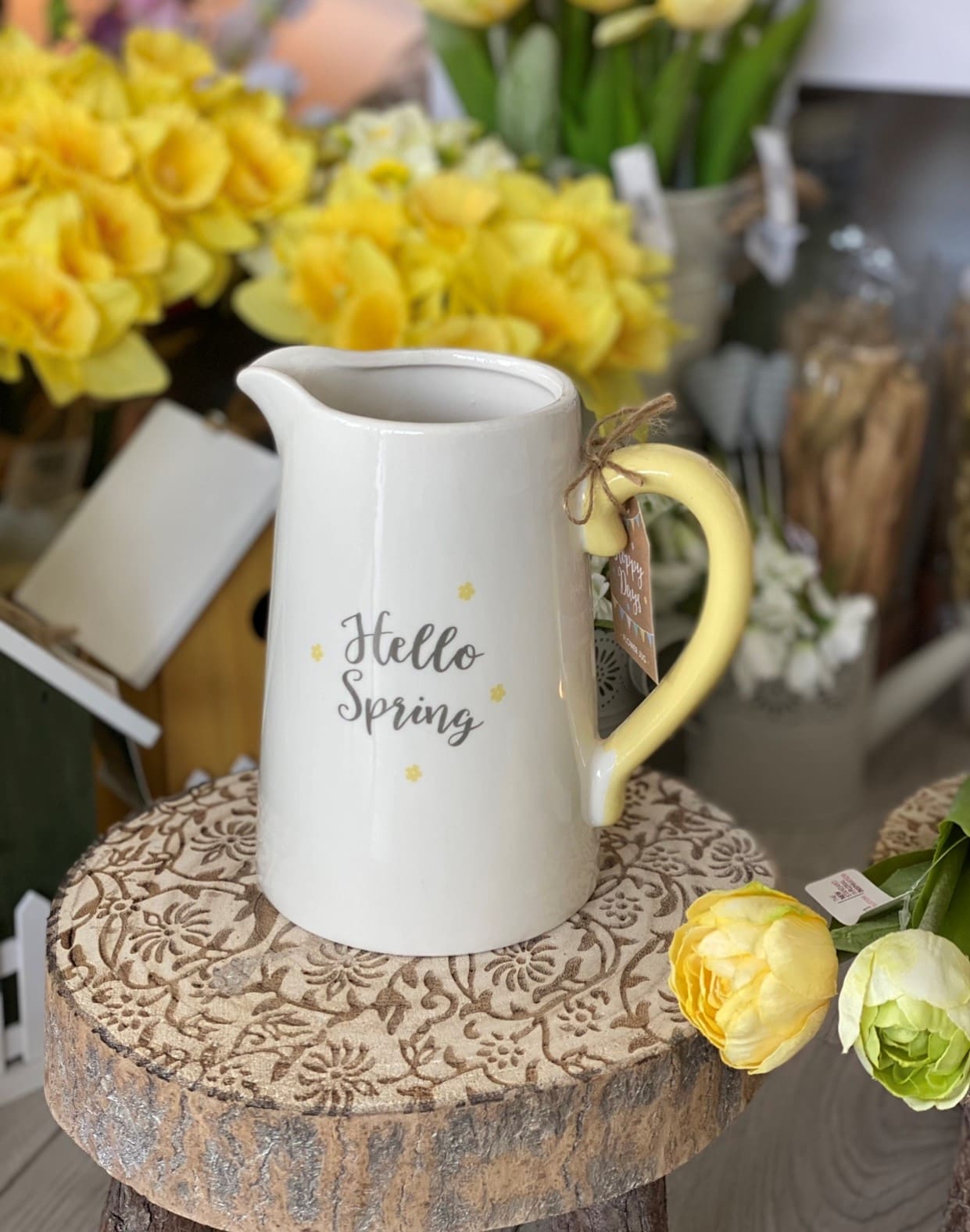 This ceramic flower jug will welcome in the season with ‘Hello Spring’ text and a contrasting yellow handle. Perfect for holding flowers as a vase or gifting for Mother’s Day, teacher gifts, birthdays and more.