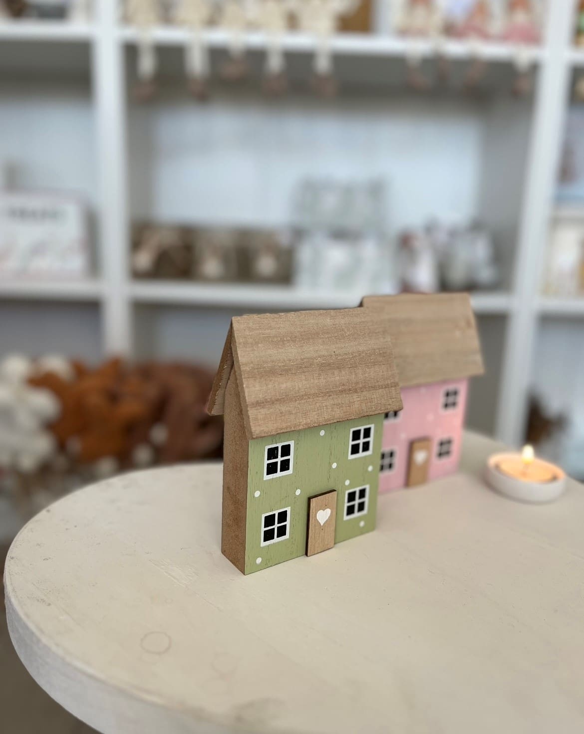 Brighten up your home with this assortment of 2 polkadot themed house ornaments made from wood.