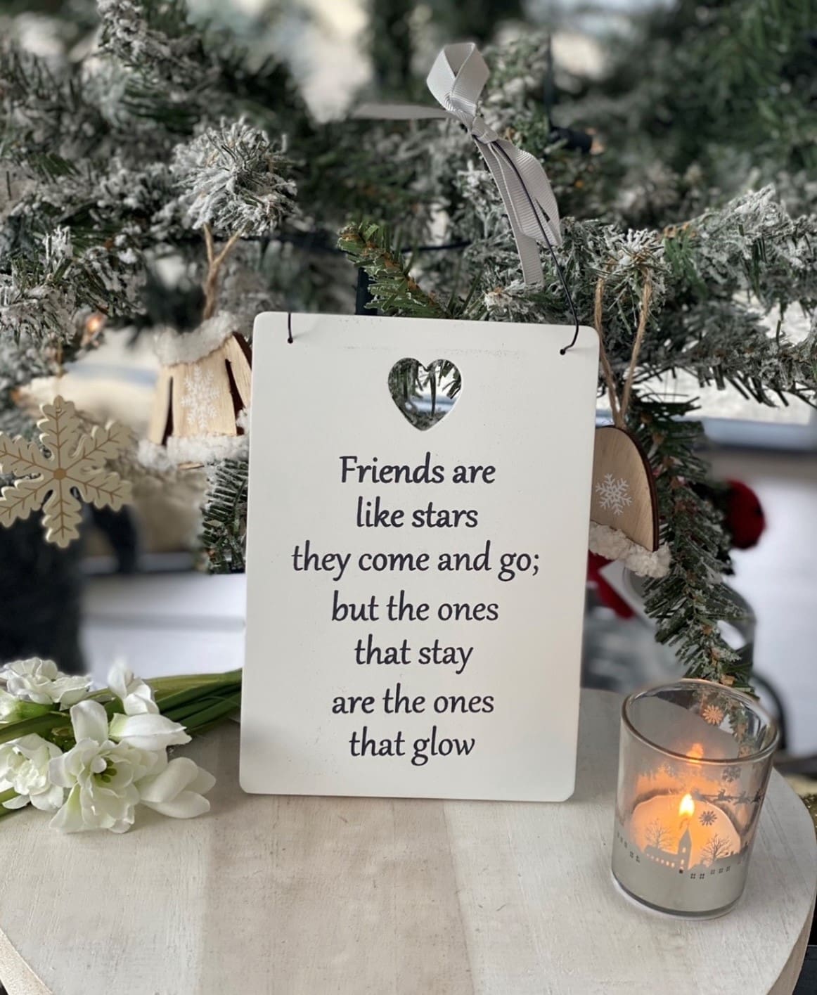 Hanging Sign With 4 Assorted Sentiment Phrases WE DIDN’T REALISE A FRIEND IS ONE OF THE NICEST THINGS BECAUSE OF YOU FRIENDS ARE LIKE STARS