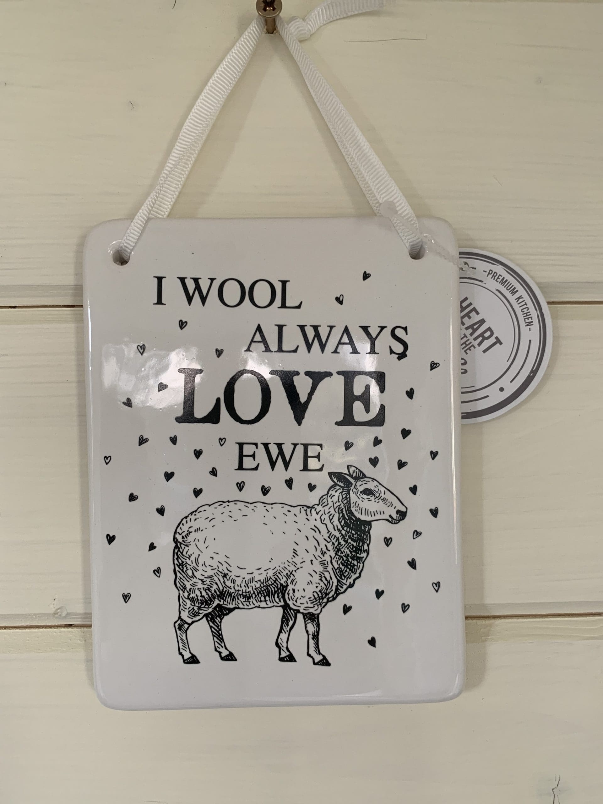PlaqueWith 6 Assorted Animal Designed Plaques: ‘For Duck Sake’ ‘Kitchen Closed This Chicks Had It’ ‘Kitchen Closed Not In The Mood ‘I Wool always Love Ewe’ ‘ I Know Its Cheesy But I Think Your Grate’ ‘ You Make Me Feel Like I Can Fly’