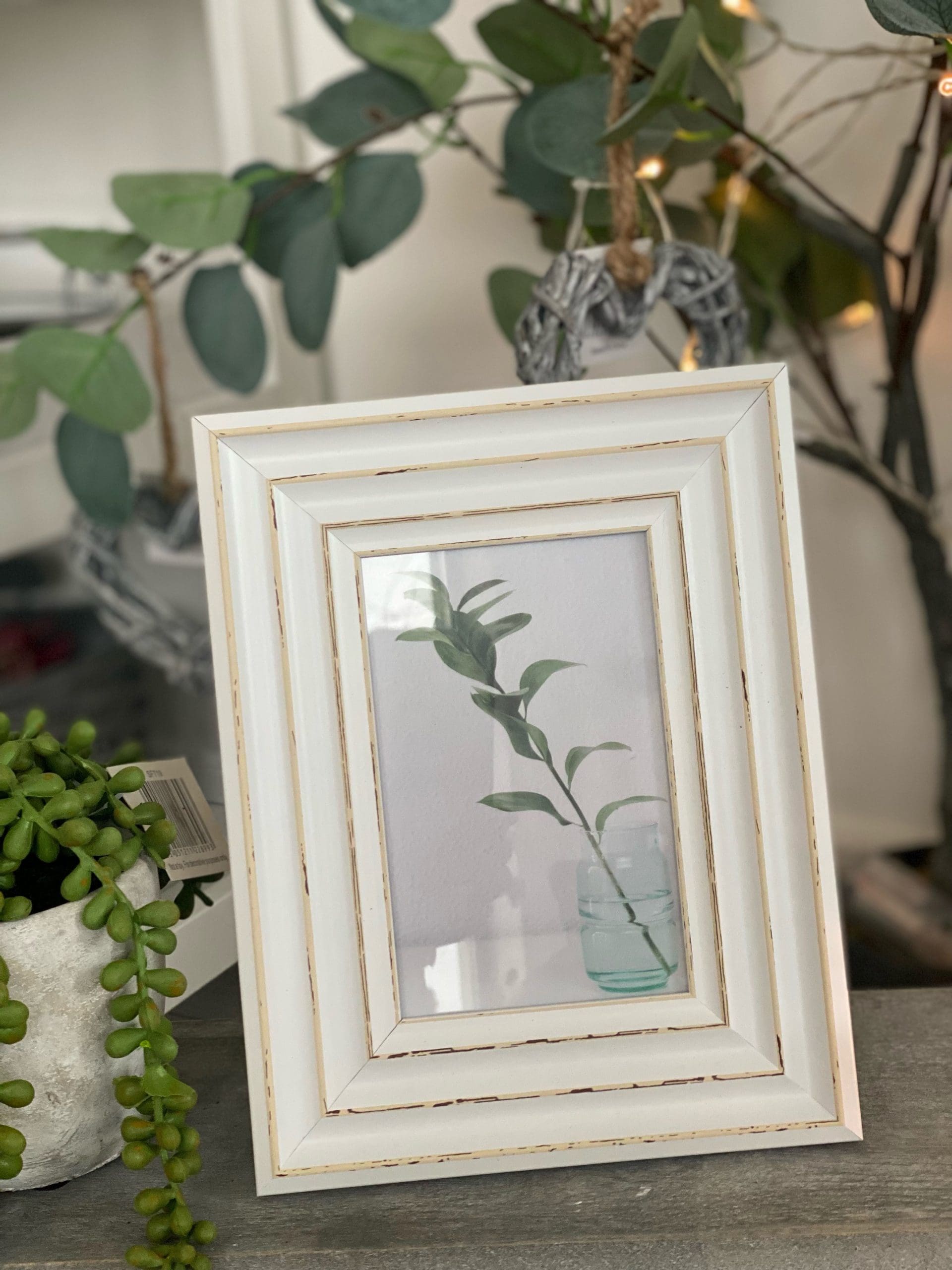 Wooden Photo Frame With An Antique White Paint Design 22 x 17cm