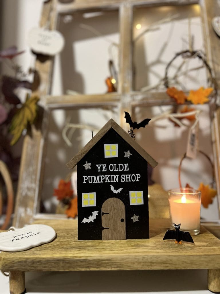 Wooden Ye Olde Pumpkin Shop Decoration - 13.5x2x20.5cm