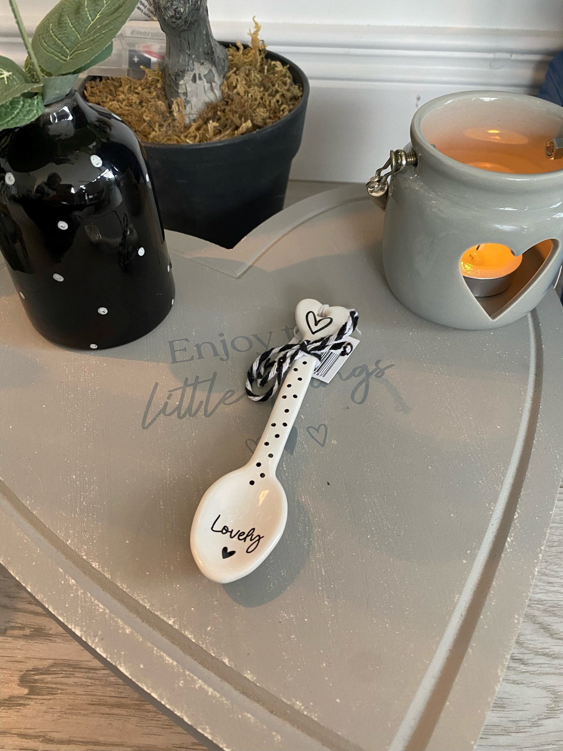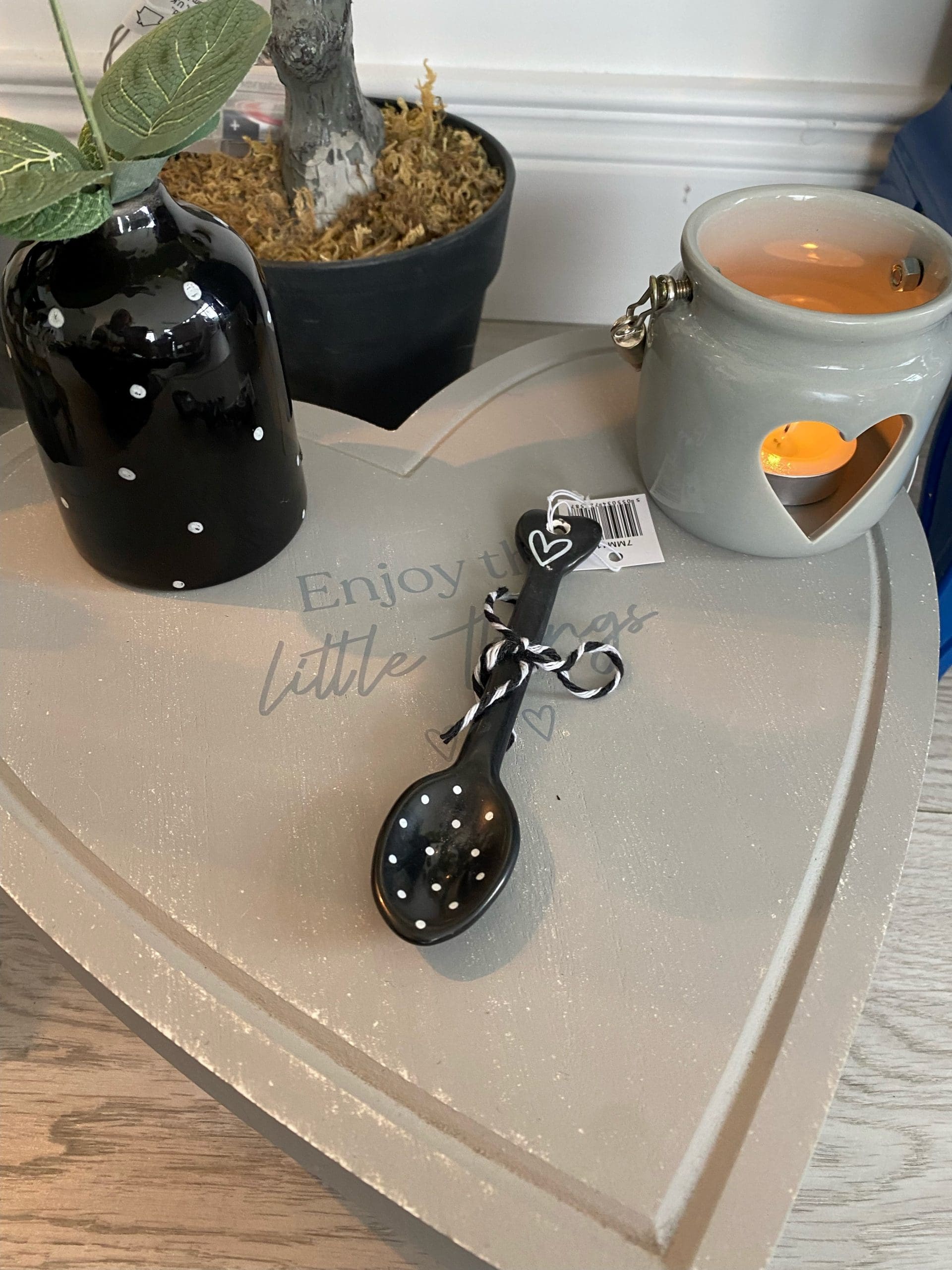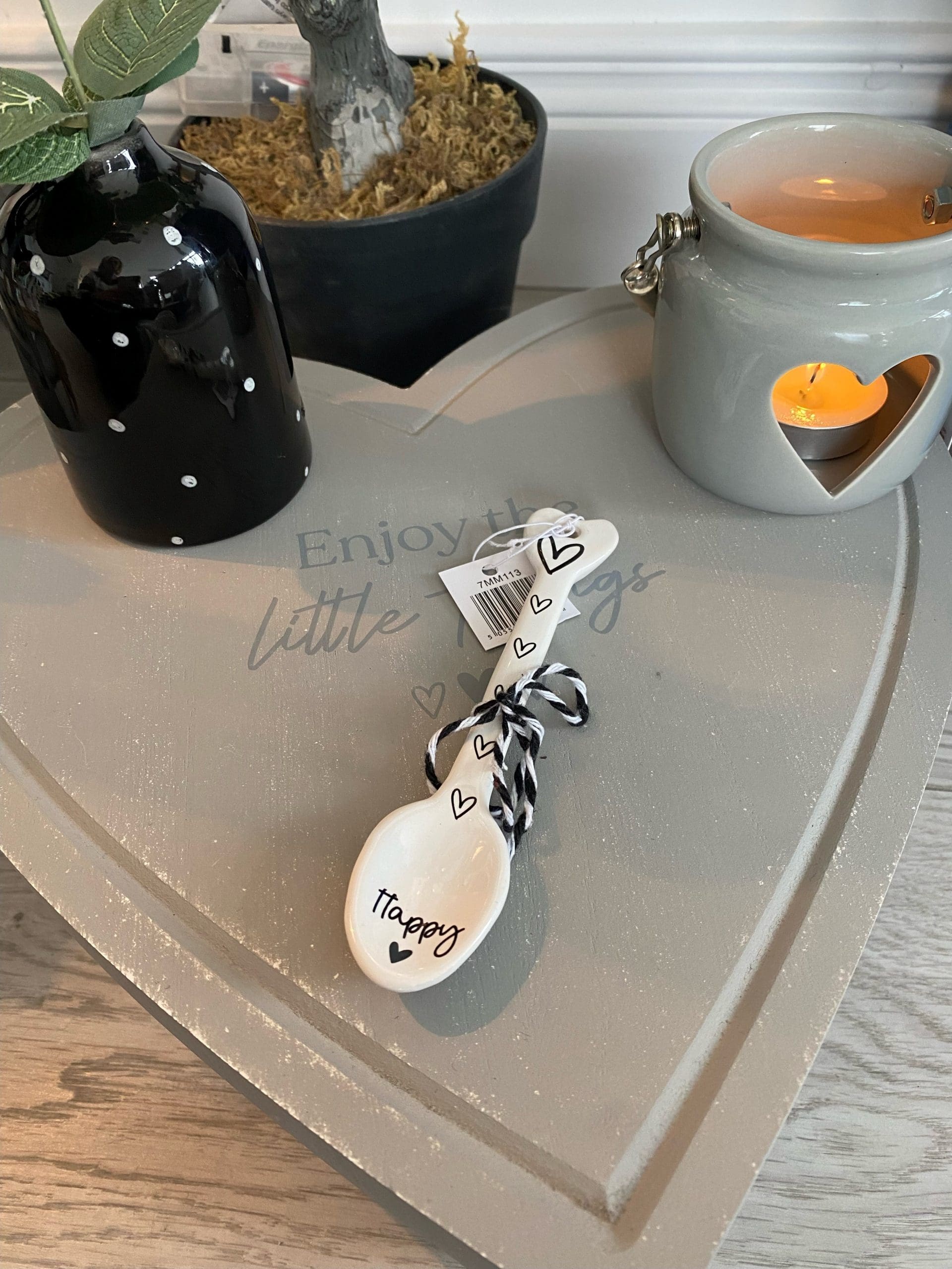 Black & White Ceramic Spoons Size : 12.5*2.5*2 Black with white spots White with spots lovely White with hearts happy