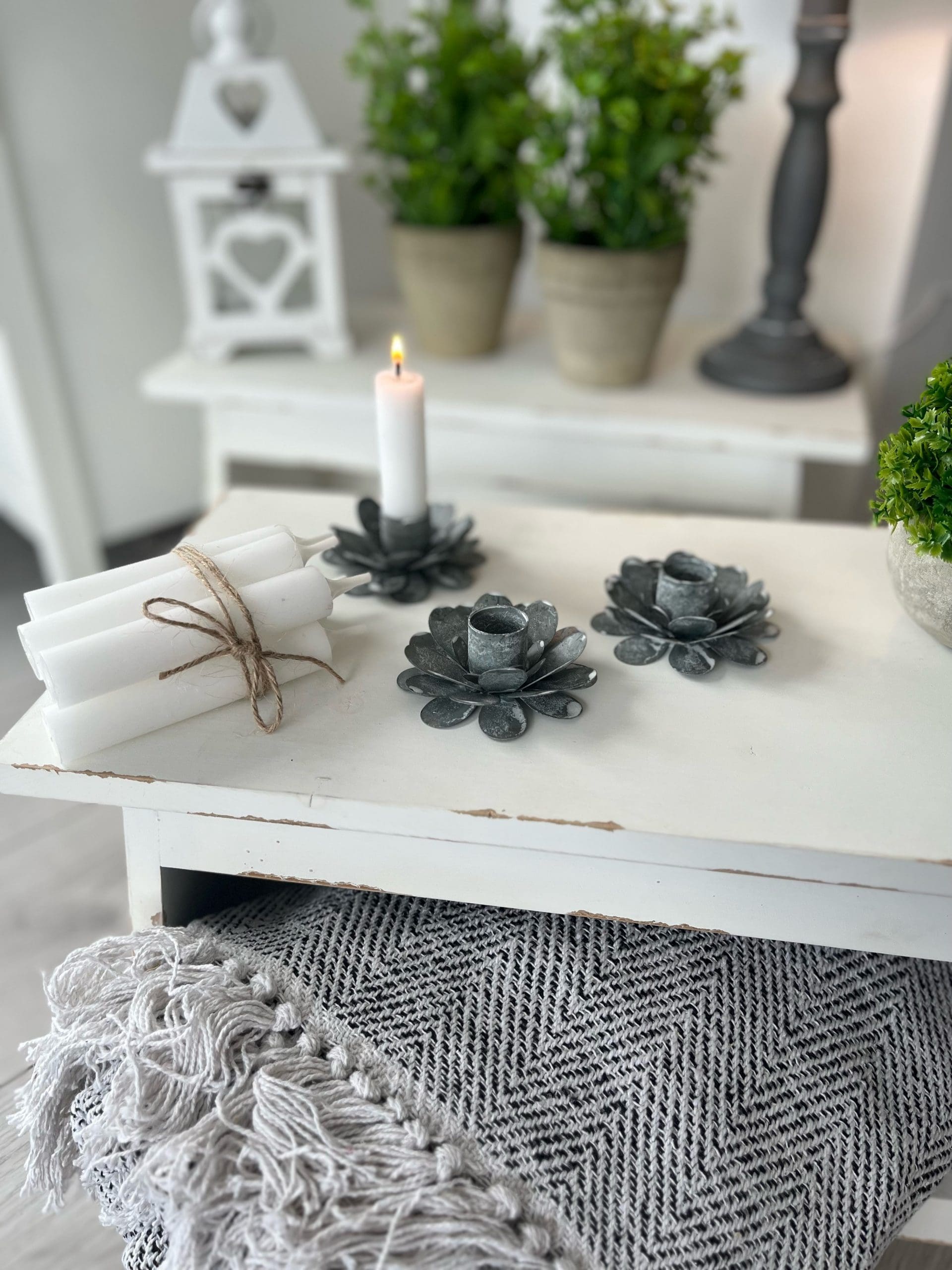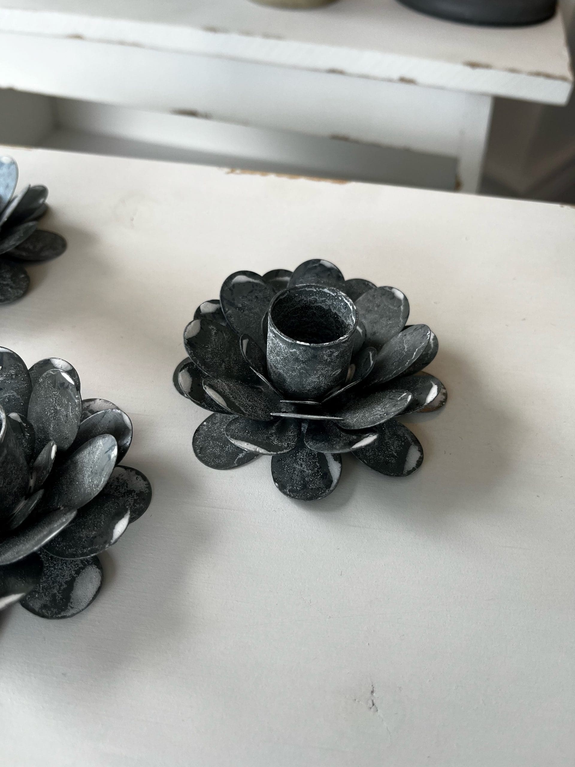 Candlestick Flower For Short Dinner Candles (Candles Sold Separately in bundles of 6) H5/L9.5/B7.5 cm antique zinc