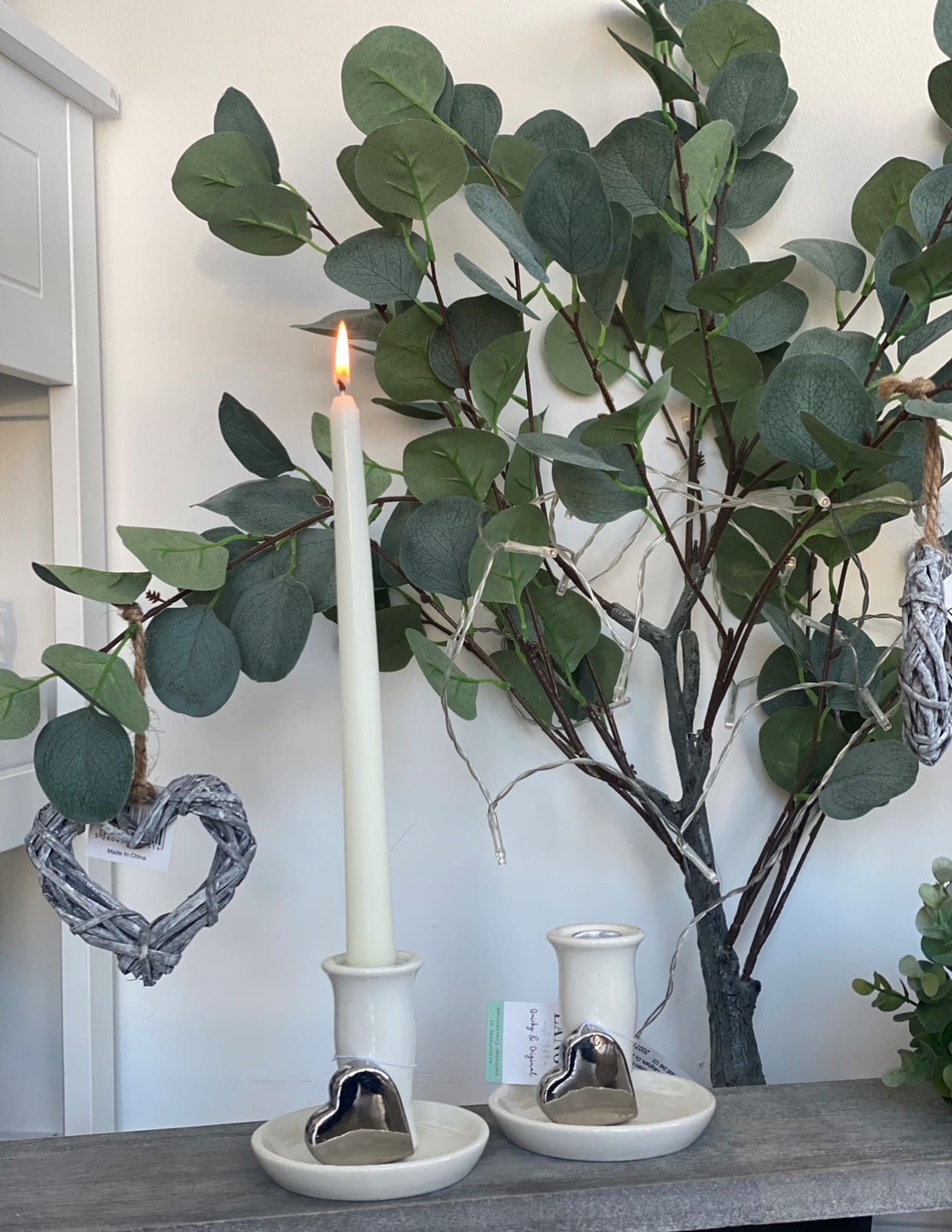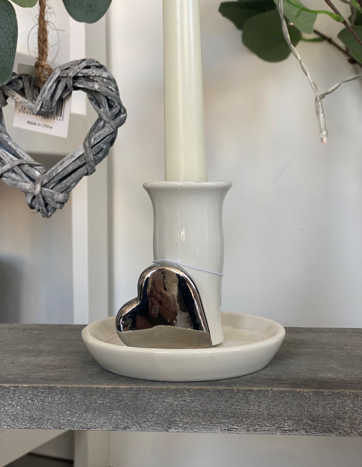 Ceramic Candle Holder With Silver Heart Measurements: 43*10*15 cm (candle not included)