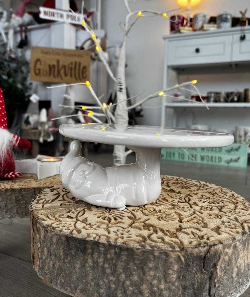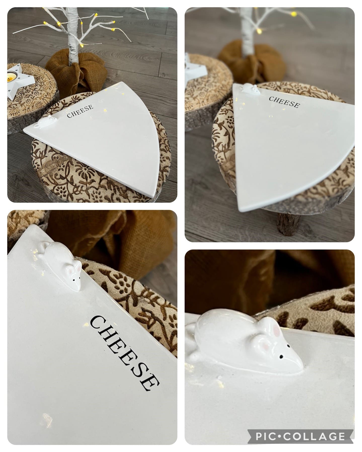 White Ceramic Plate with ‘Cheese’ Decal and Mini Ceramic Handpainted Mouse.
