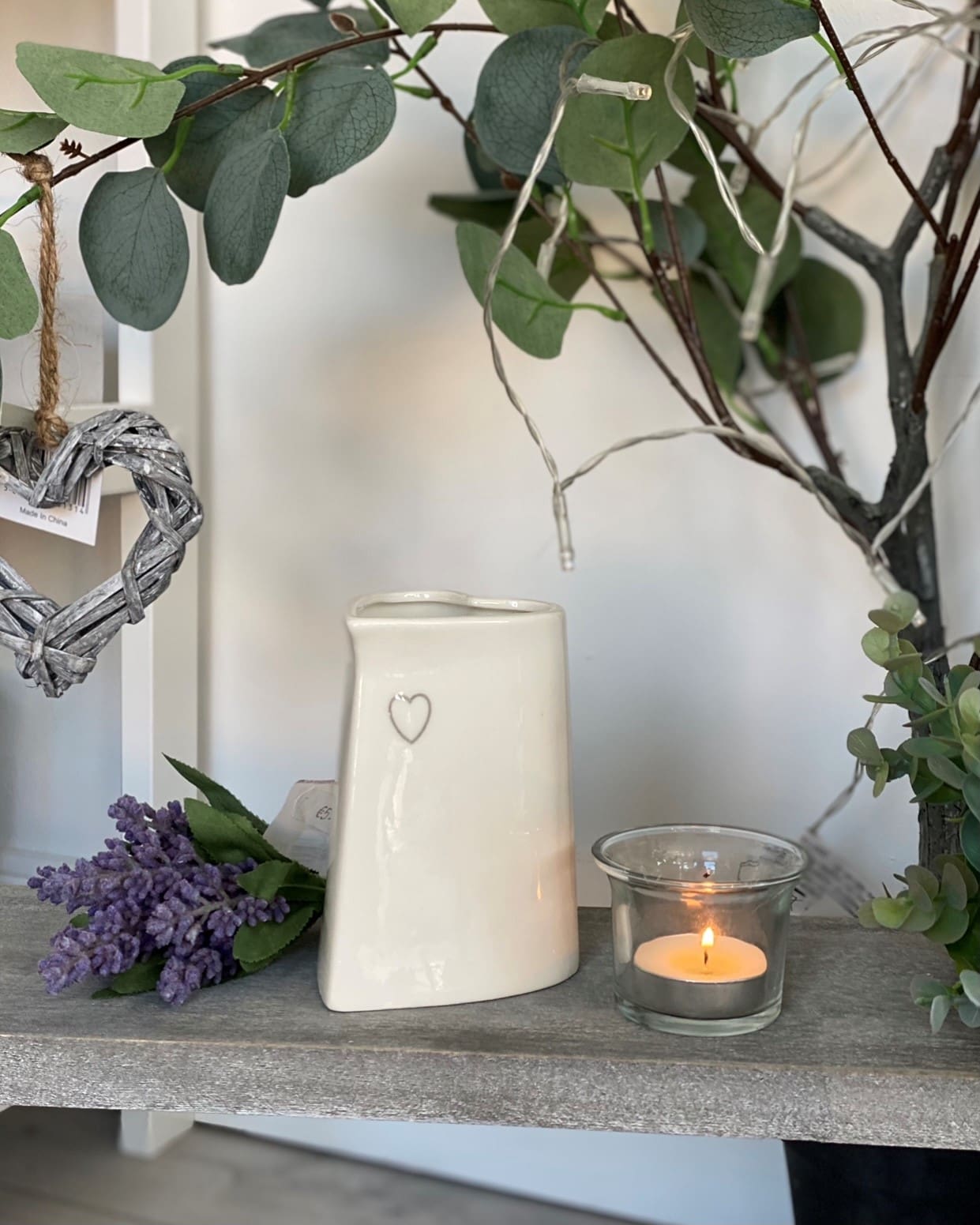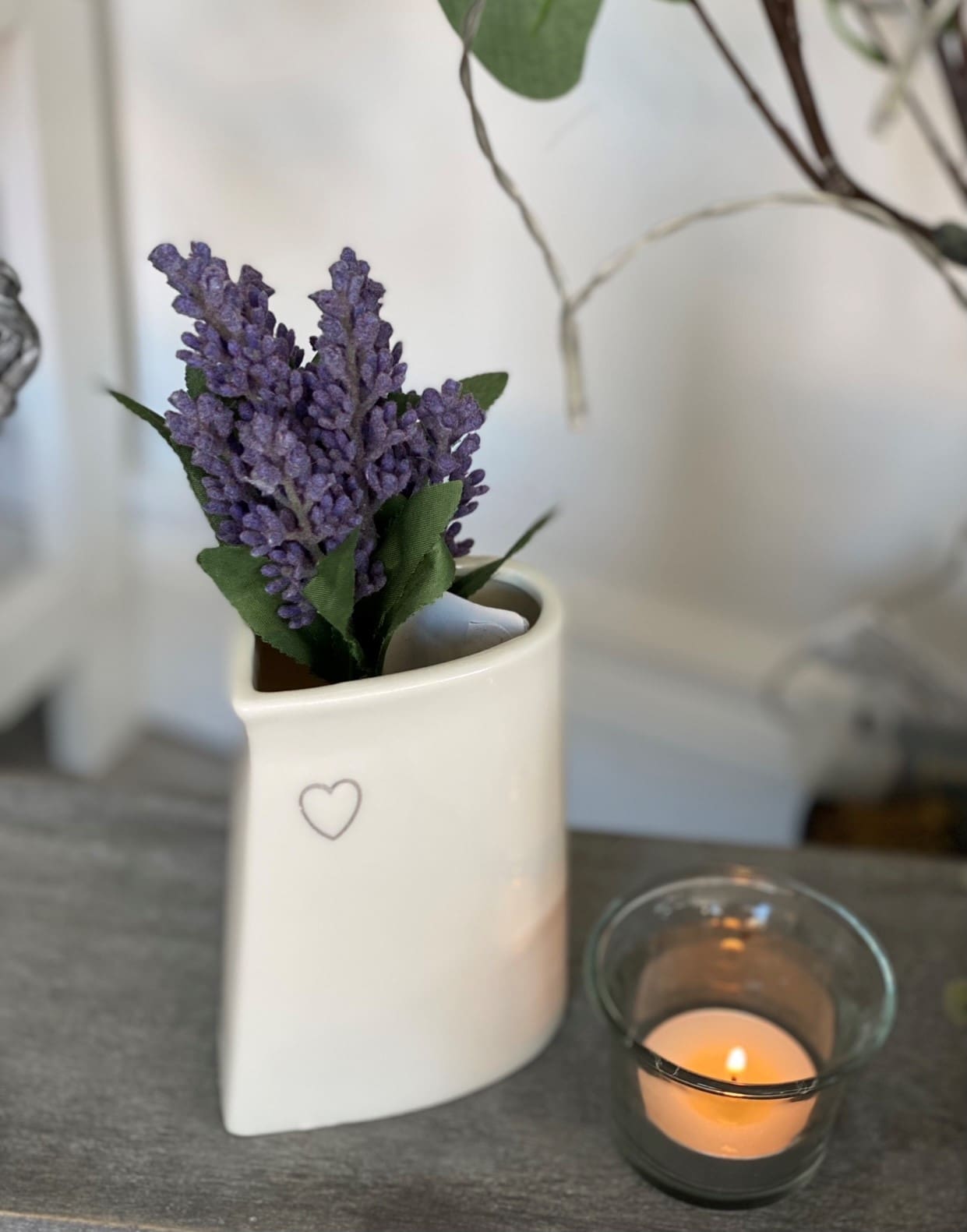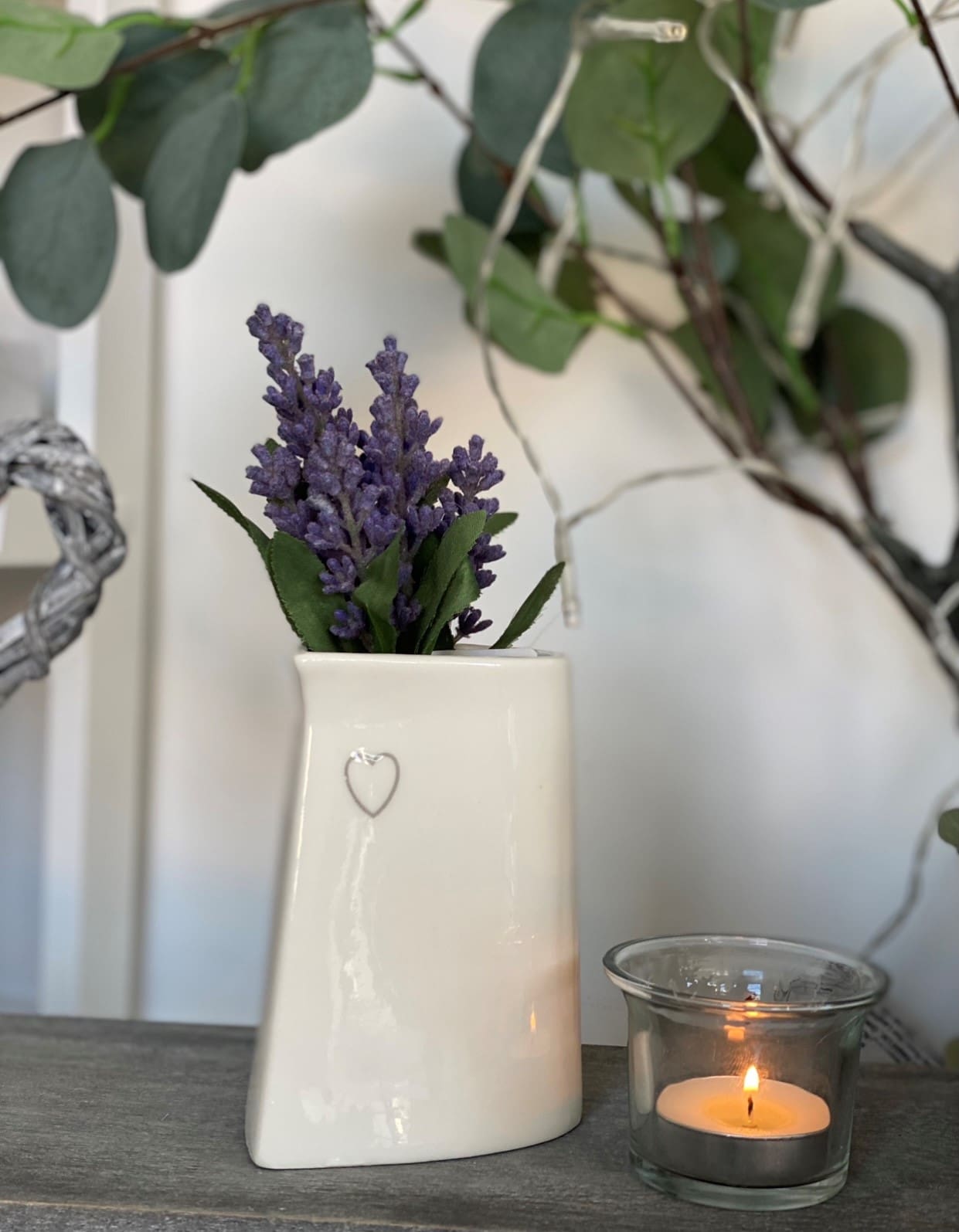 Ceramic Candle Holder With Silver Heart