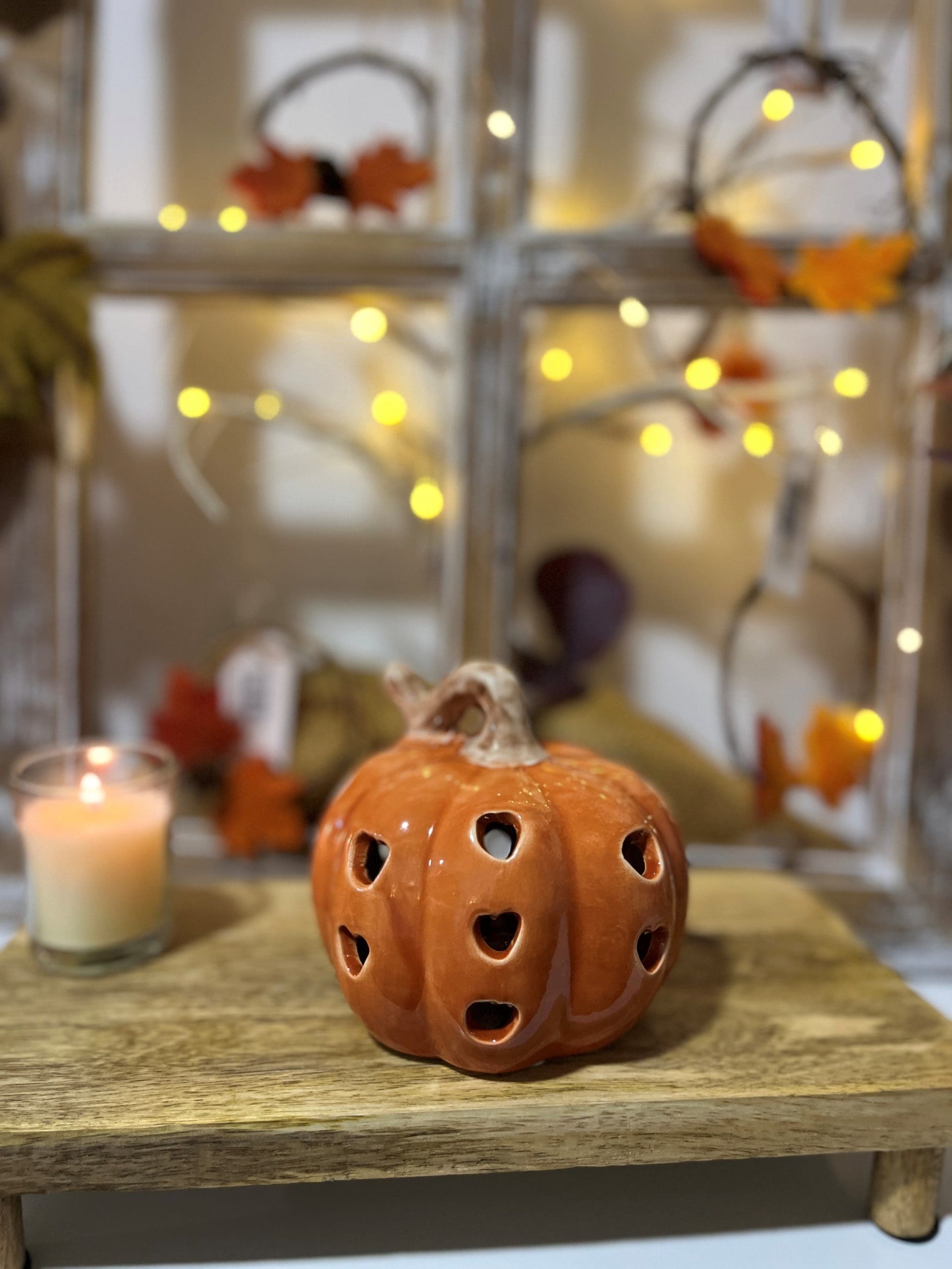 CERAMIC LED LIGHT UP PUMPKIN- 11CM – ORANGE