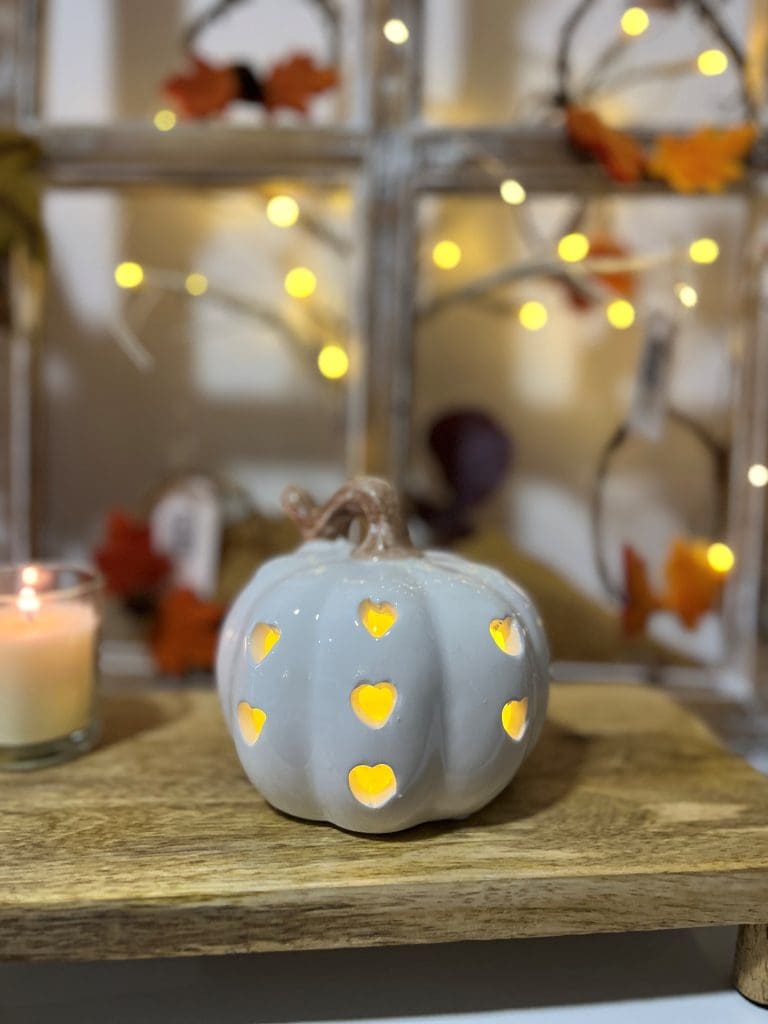 Ceramic LED LIghtup Pumpkin - 11cm - White
