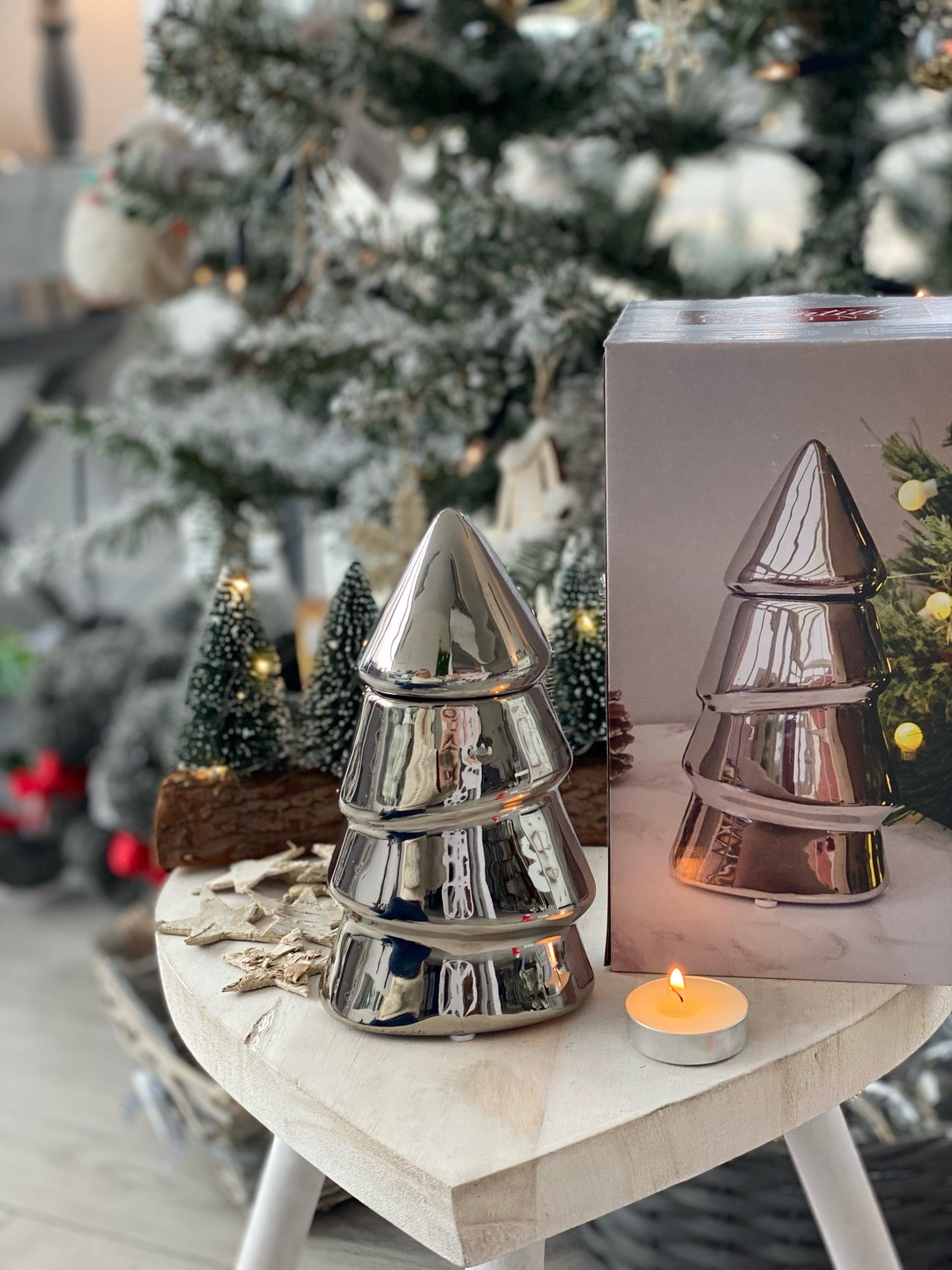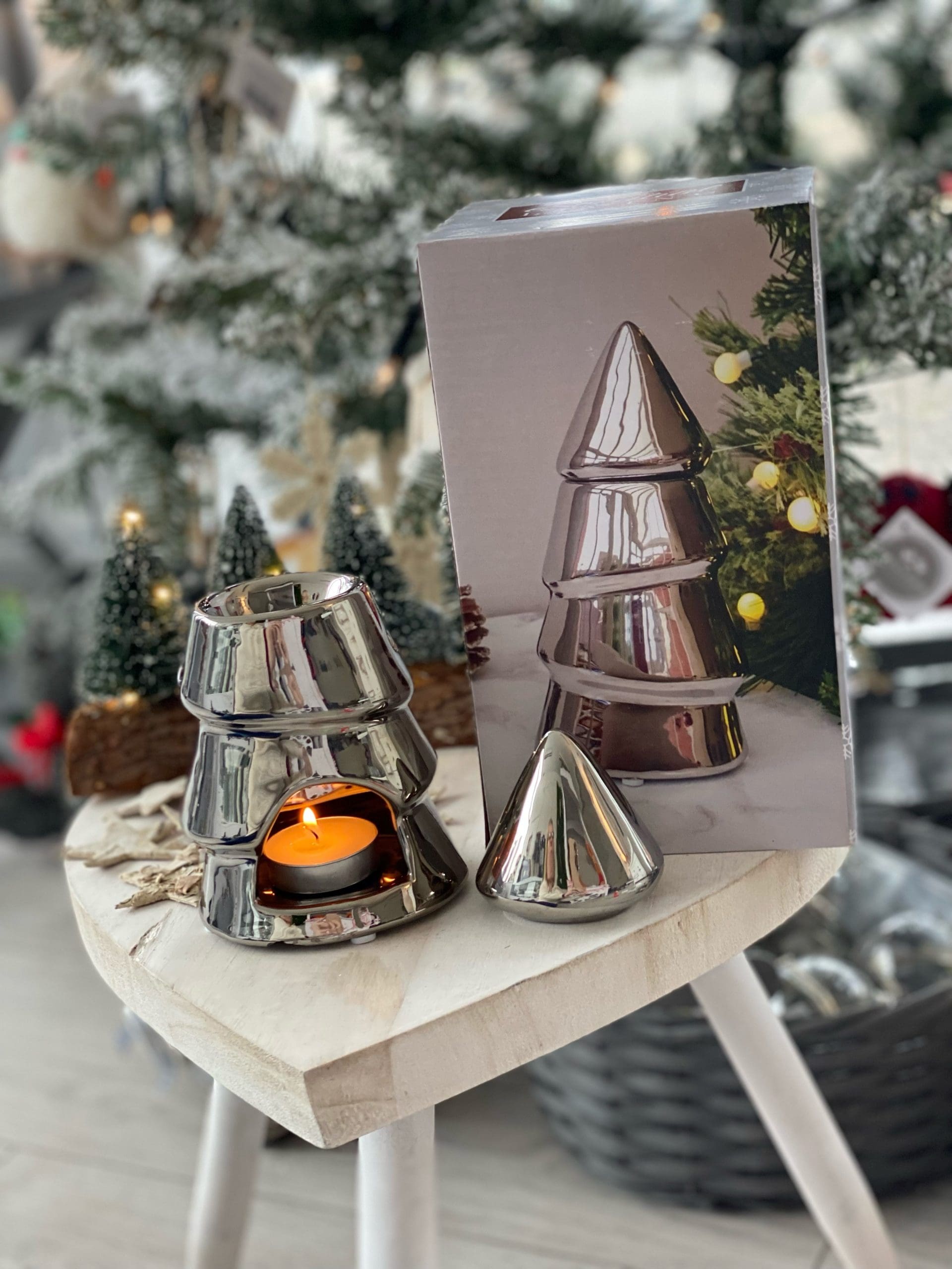 A Stunning Festive Themed Tree Shaped Wax Melter, with Detachable Lid To Reveal The Bowl Underneath. Doubles as a Gorgeous Ornament When Not In Use!