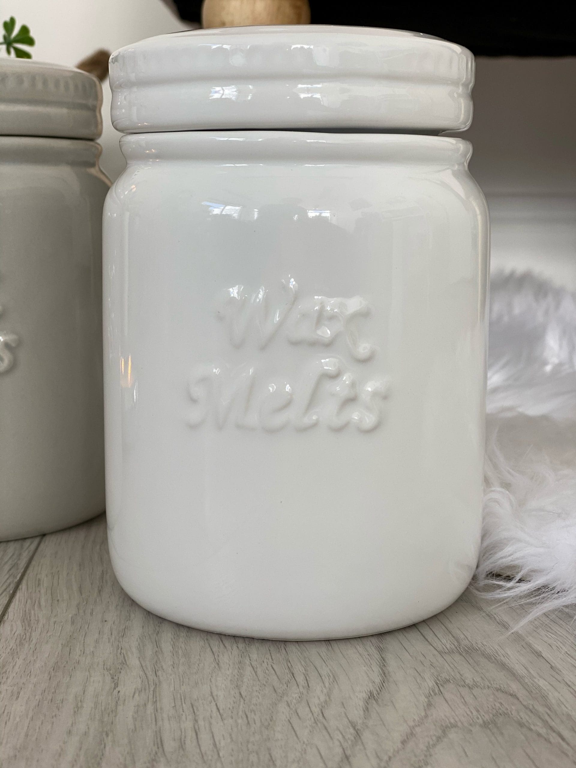 This Gorgeous Ceramic Storage Jar Is The Winning Ticket, with Embossed ‘Wax Melts’ Text, Indented Ceramic Lid and Silicone Soft-Close Seal. Individually Boxed.