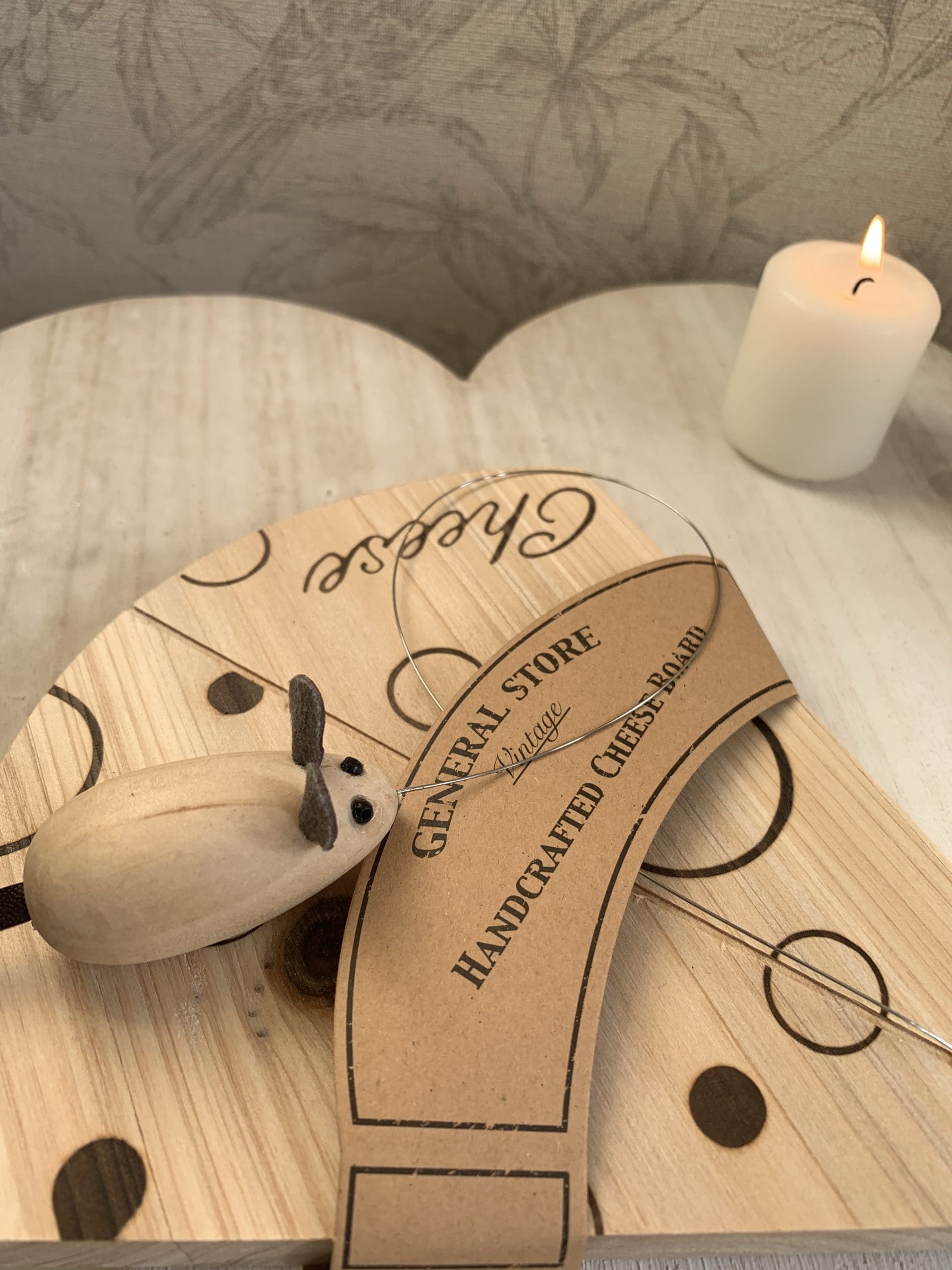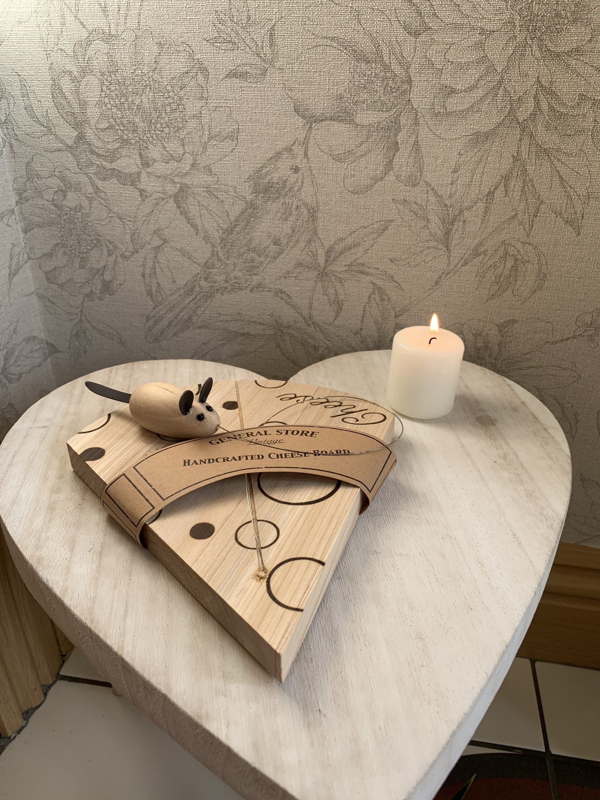 A fantastic cheese shaped cheeseboard with a mouse cheese cutter. A great gift item. Size: 18 x 16cm.