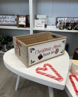 Fabulous Christmas gift idea, a movie night treat box especially for Christmas movie time, little wooden gift tag attached to the side for your own message, fill with recipients favourite treats.