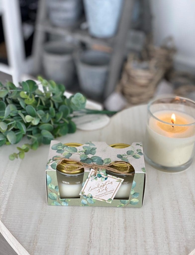EUCALYPTUS PRINT MINI MASON CANDLES 5 X 6 CM