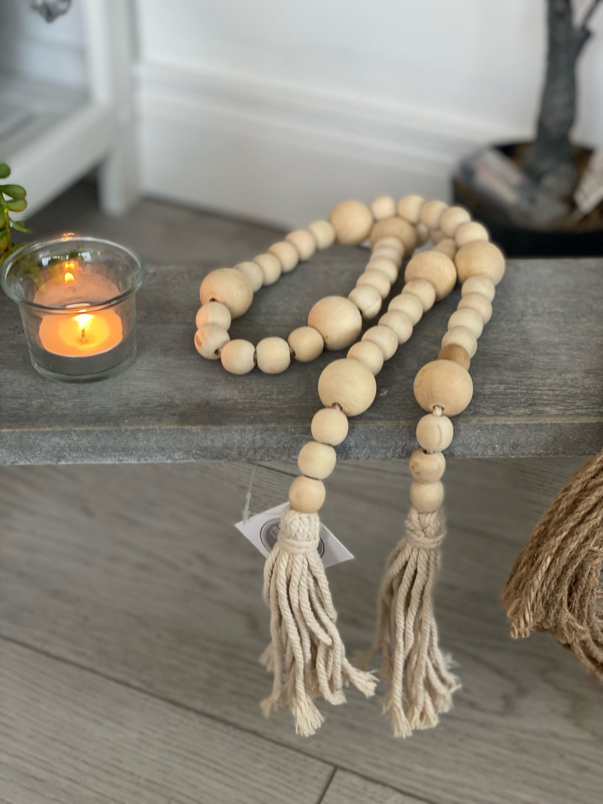 Decorative Wooden Beaded Tassels Grey & Cream
