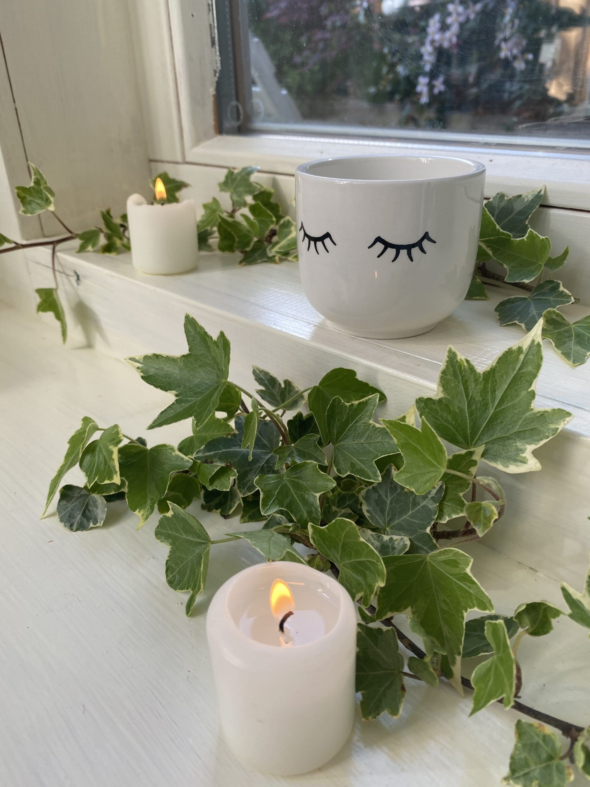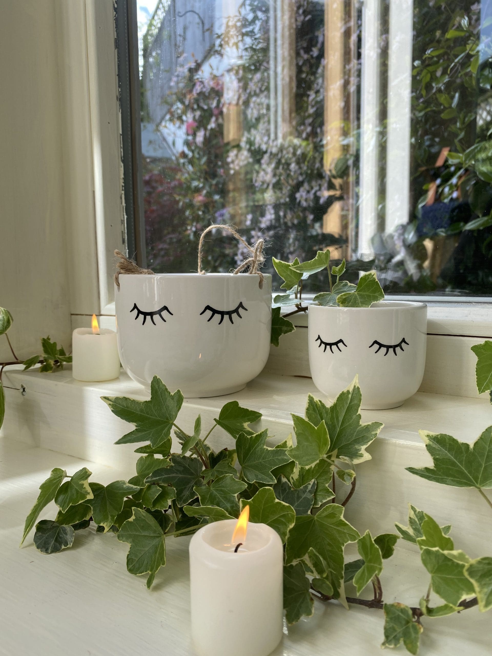 Cute Ceramic Planter Pot with Eyes Shut Design, adorable little planter matching
