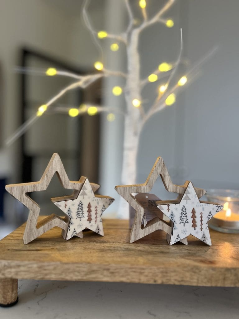 Wooden Star W/Tree Print, 12 cm
