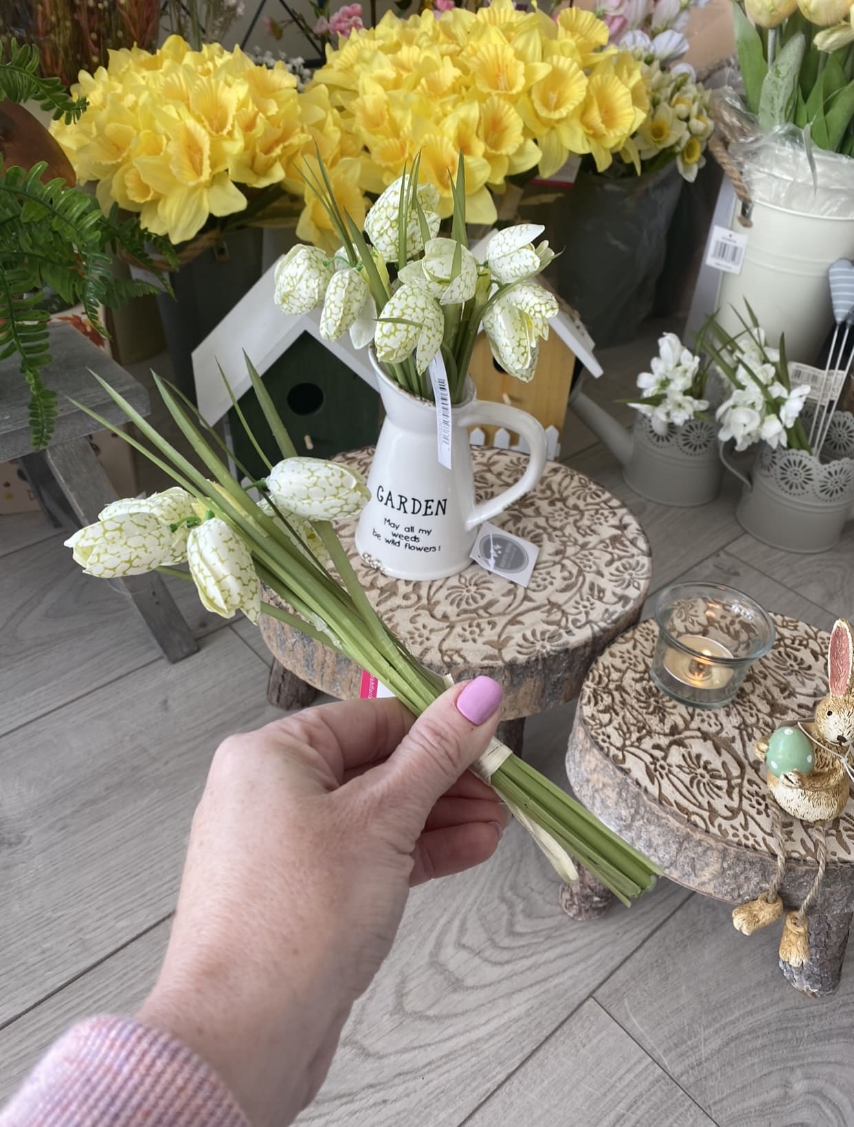 Fritillaria or Snakes Head Fritllary Posy Artificial 20cm- Cream