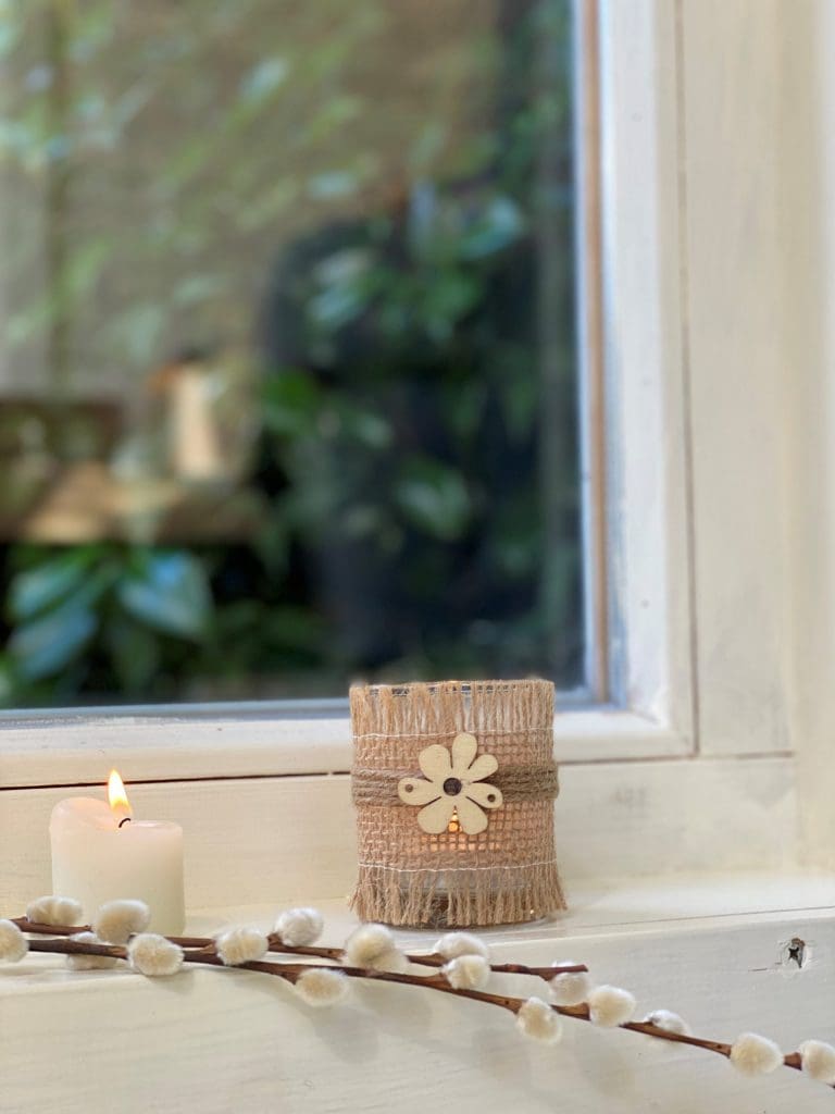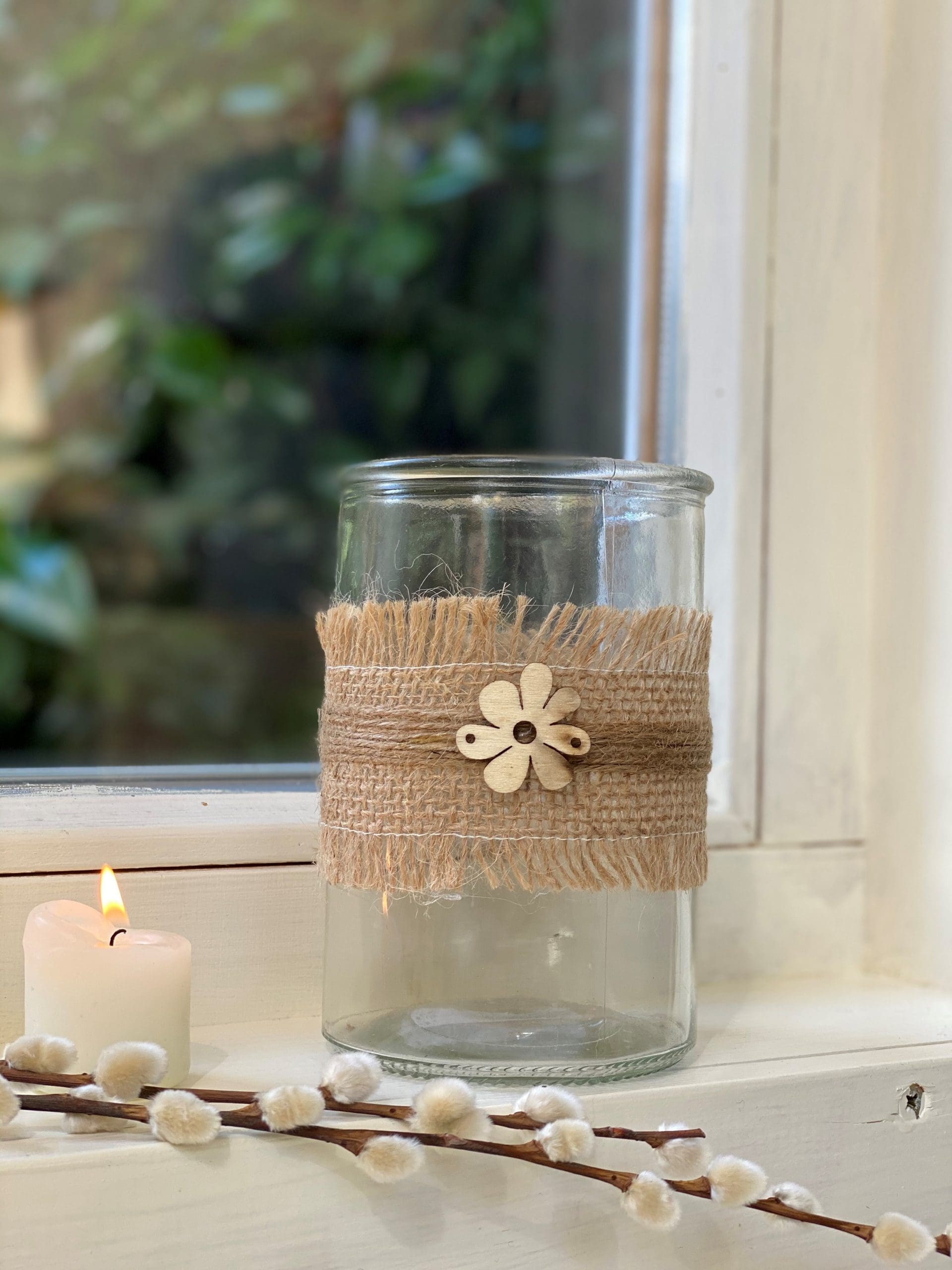 Glass Jar with Hessian Ribbon and Flower (Small)