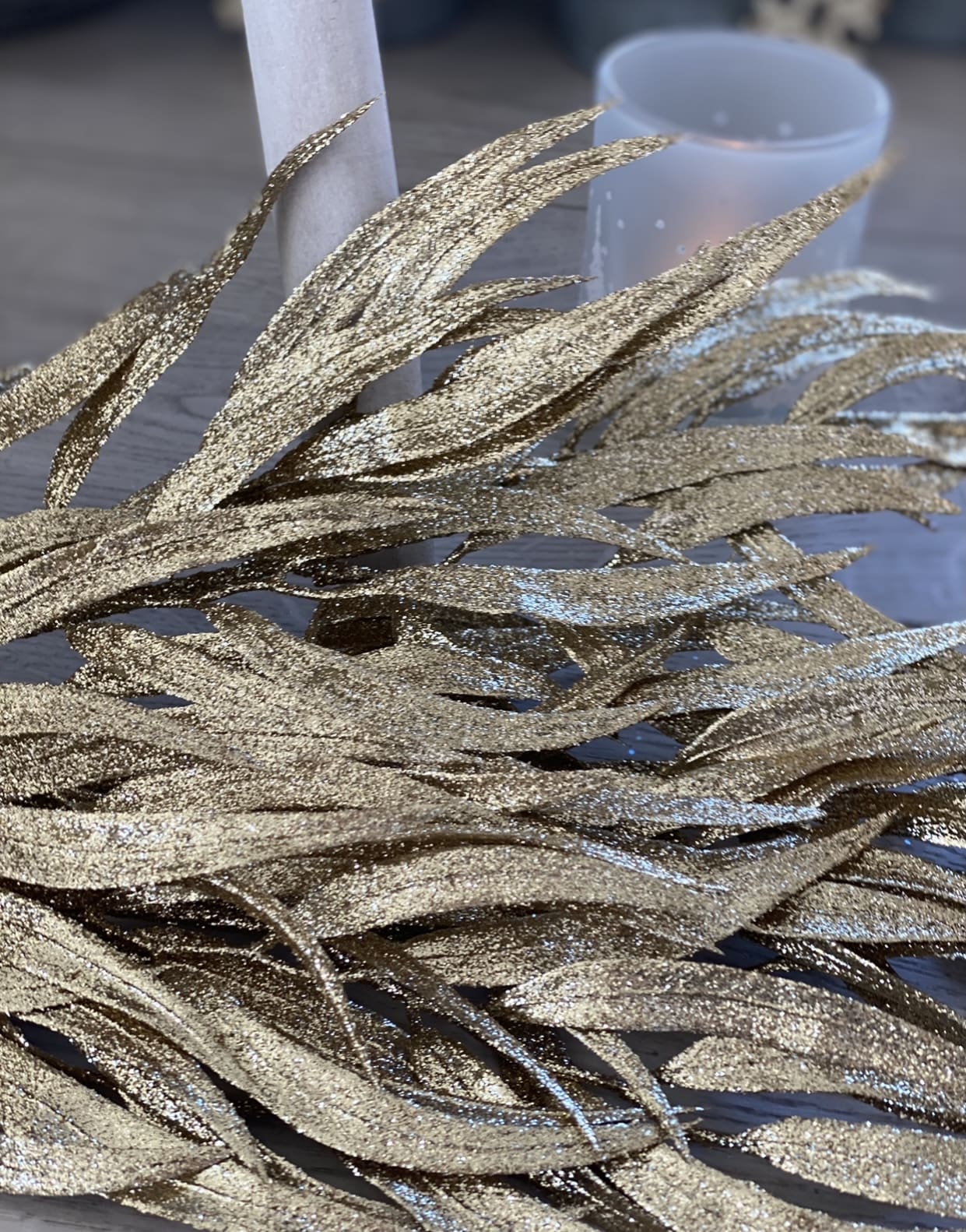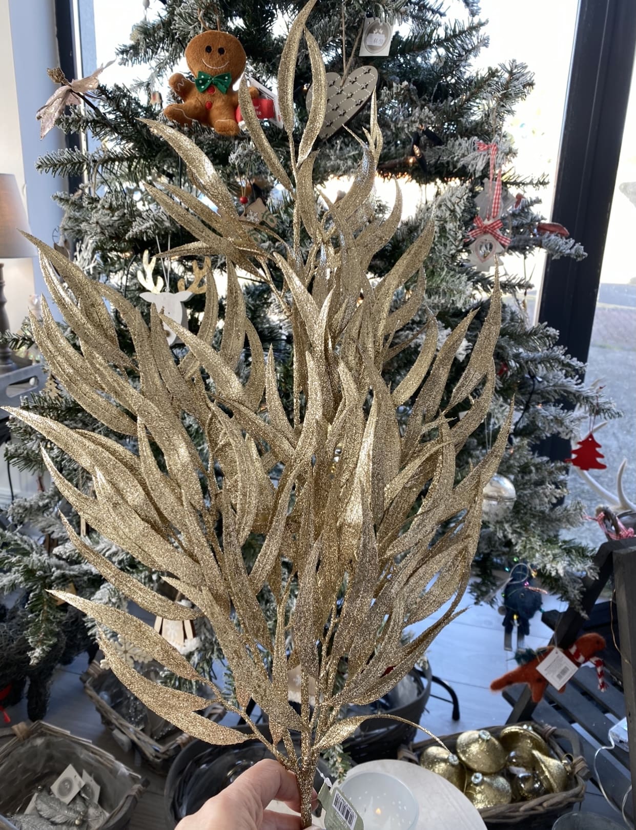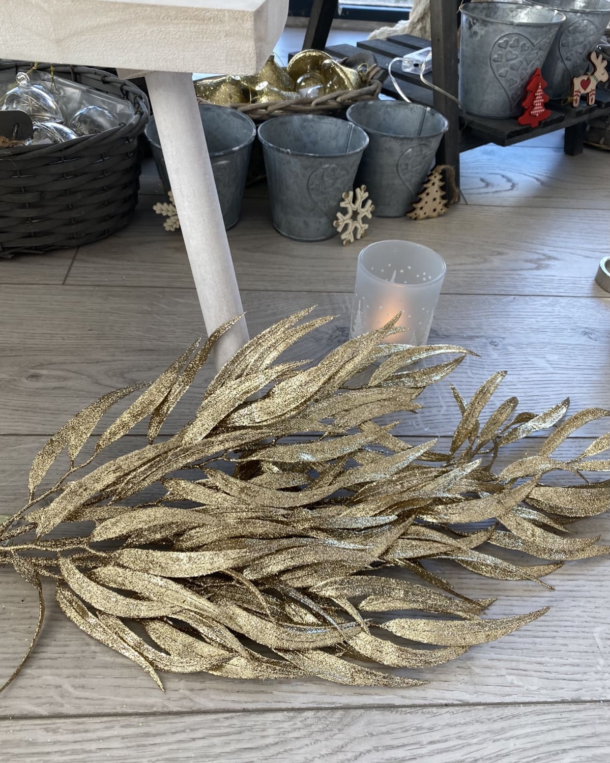 Glitter Artificial Eucalyptus Style Leave Spray 69cm/27 Inches Gold