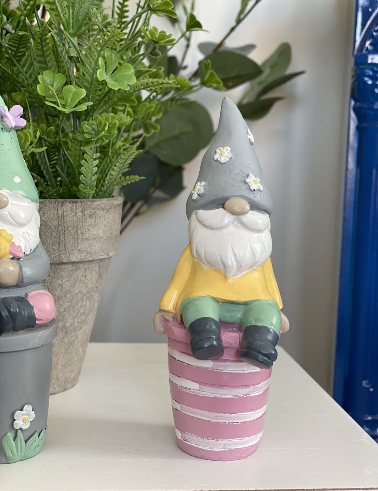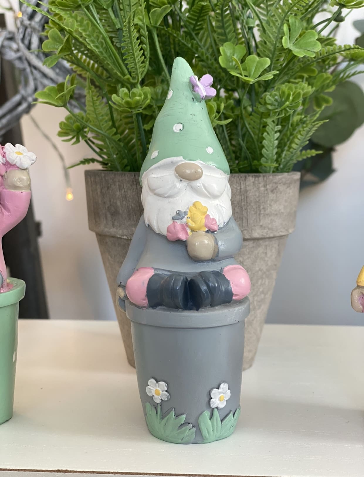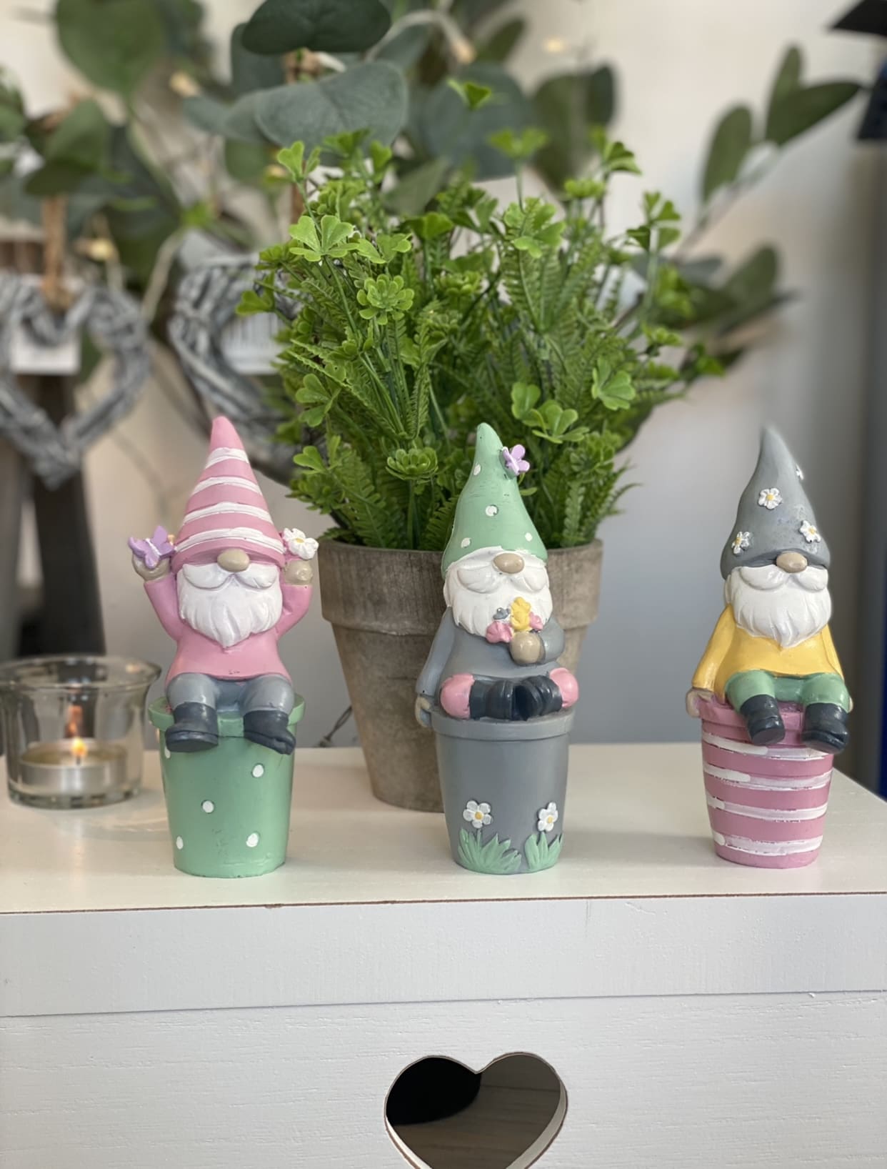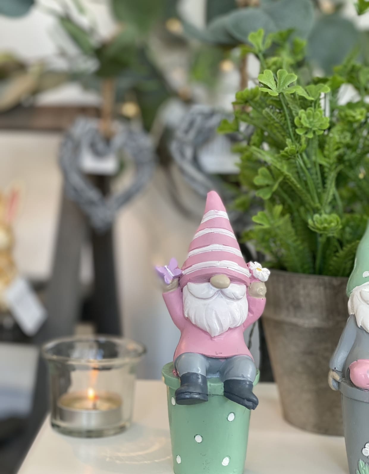 Gnome Ornament – 3 Colours Pink Hat Green Hat Grey Hat Size : 14.5 x 6cm