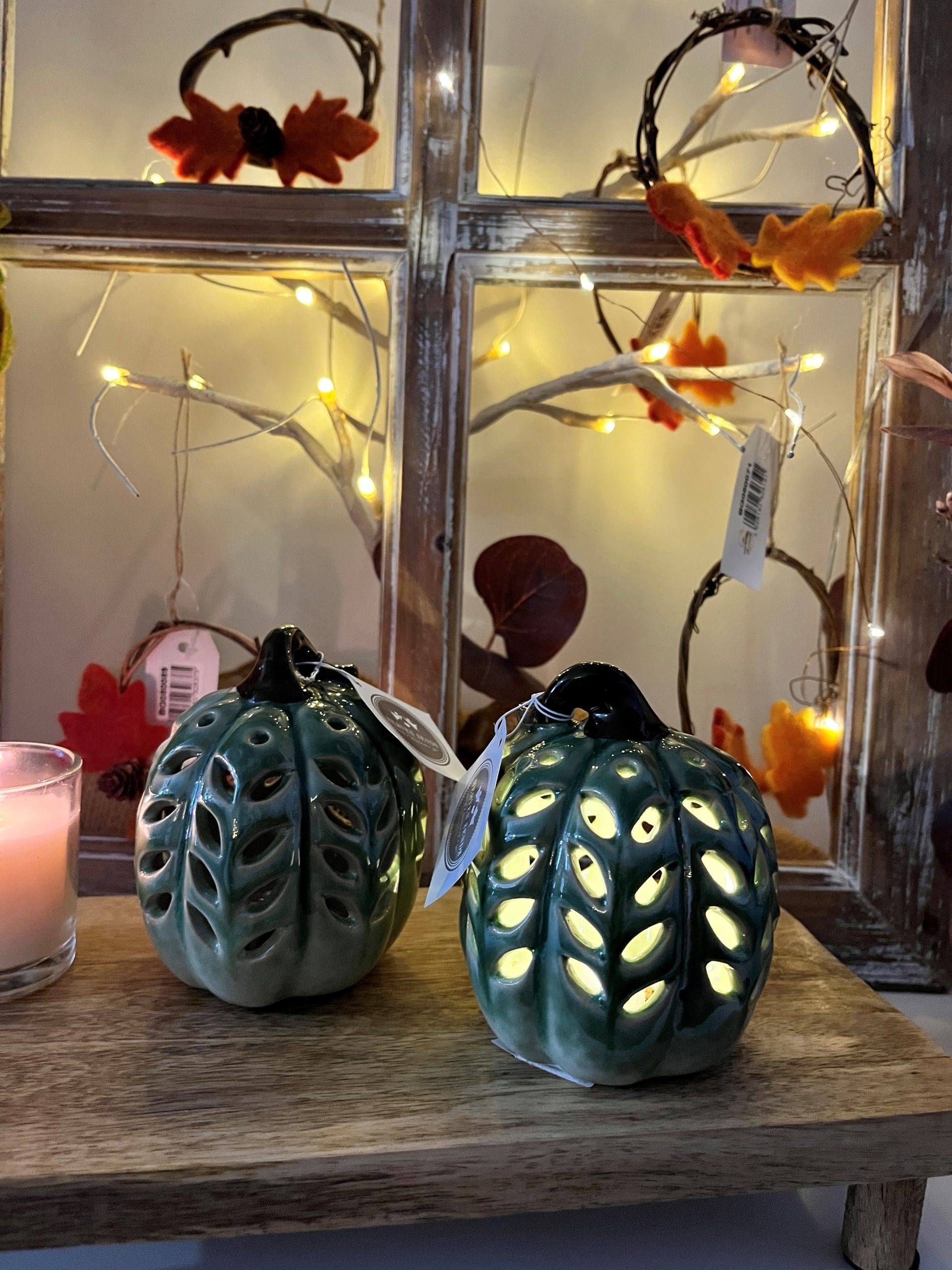 Ceramic LED LIghtup Pumpkin - 11cm - White