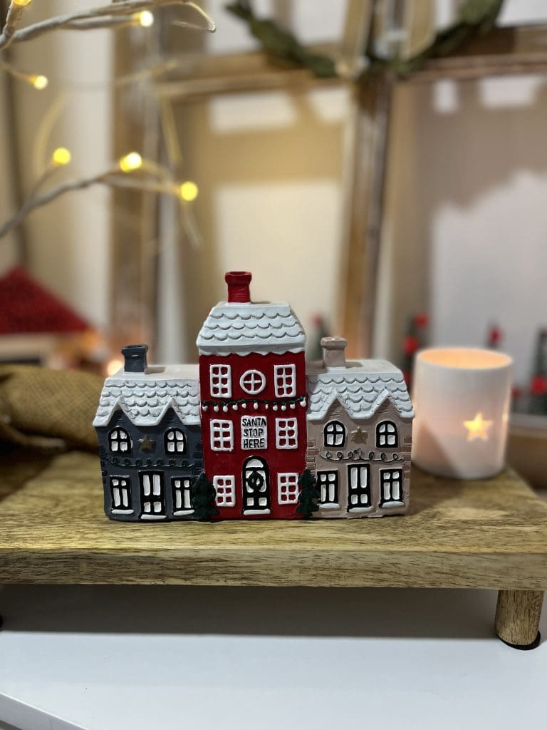 Christmas Village Incense Cone Holder Bring the cosy feel of the festive season into the home with out charming Christmas house incense cone burner. Dimensions: H11.4cm x W17cm x D6.5cm