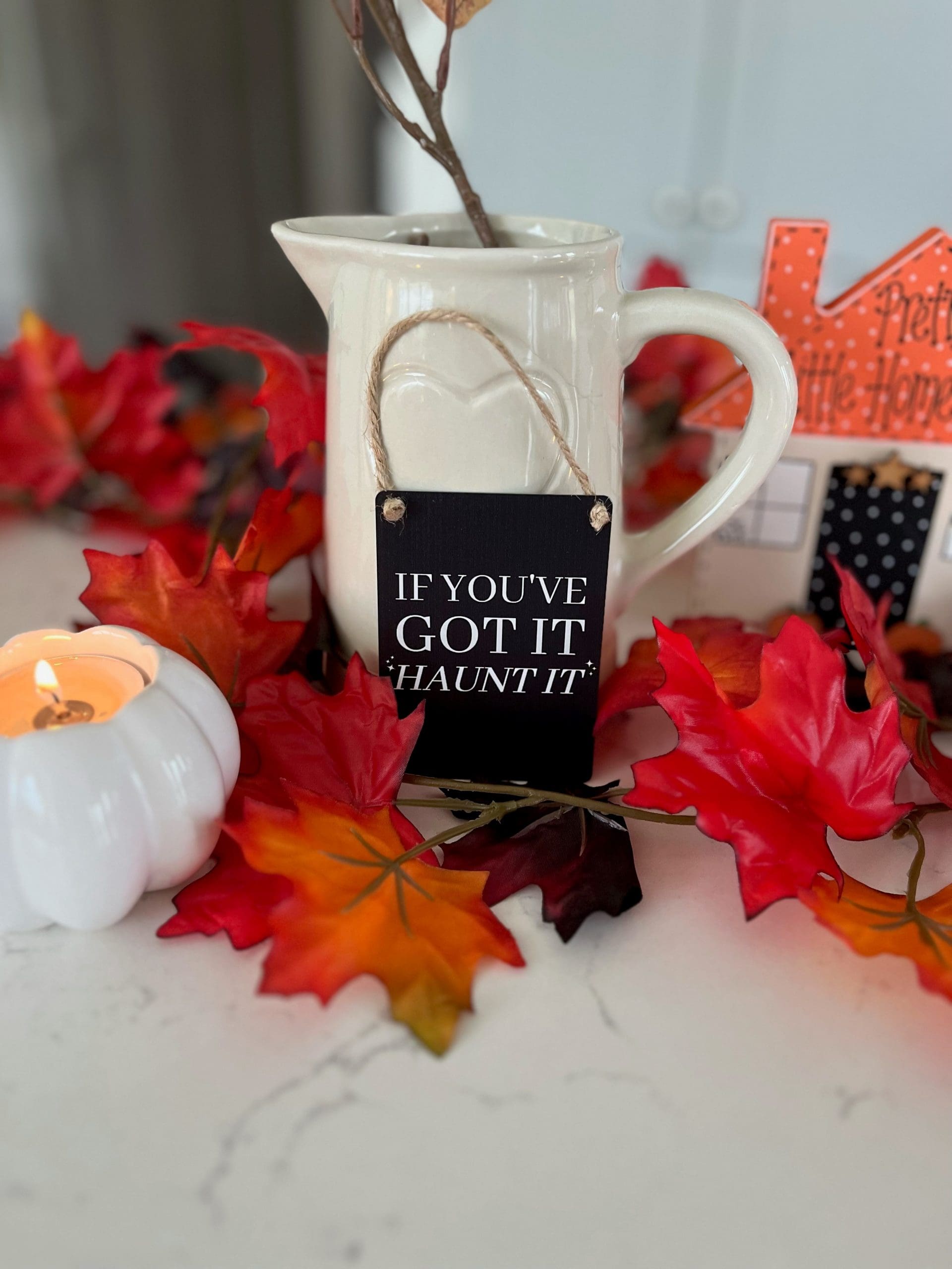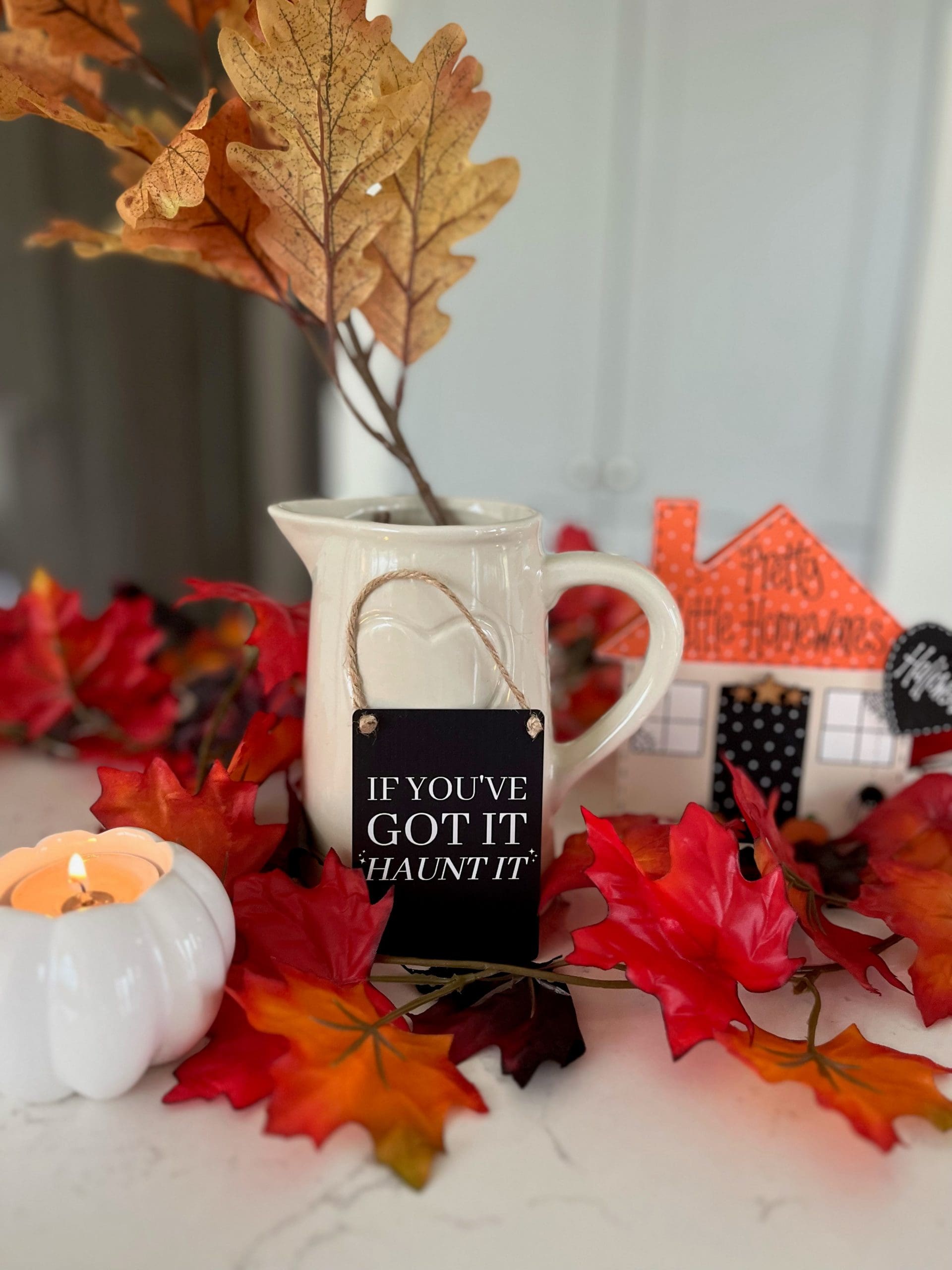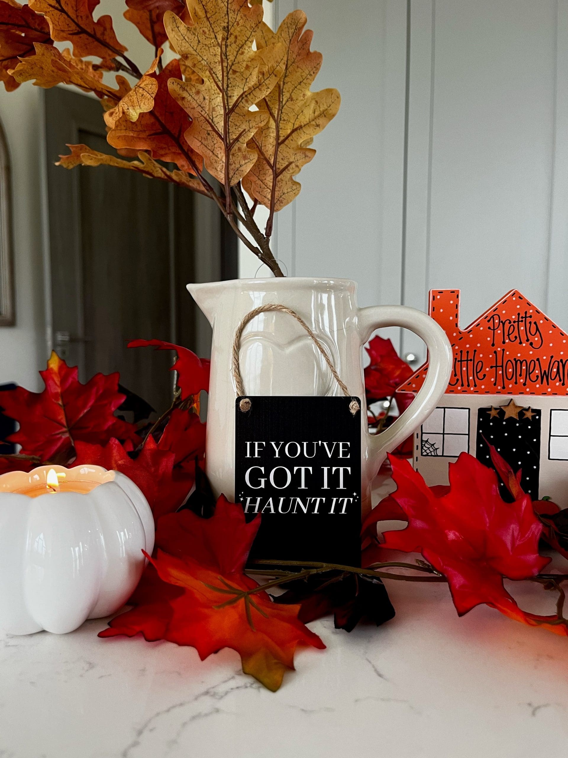 If you’ve got it. Haunt it! A humorous mini metal sign with a jute string hanger. Size 9 x 6.5cm
