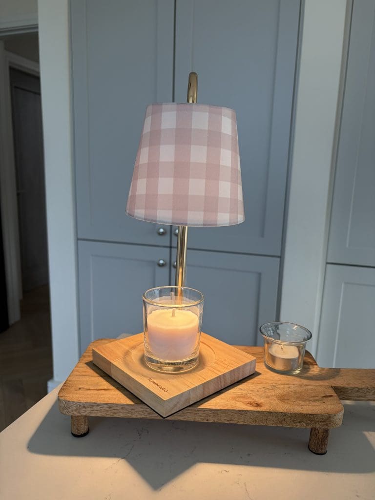 Neutral Check Shade Candle Warmer Lamp - Candle Warmer Lamp - Includes two 35W bulbs - Adjustable height to fit any space - Adjustable light intensity to control the environment - Timer with 2h, 4h and 8h options - It works connected to the electrical current (220V) - Please Note Candle Does Not Come With The Candle Warmer Lamp 🤍