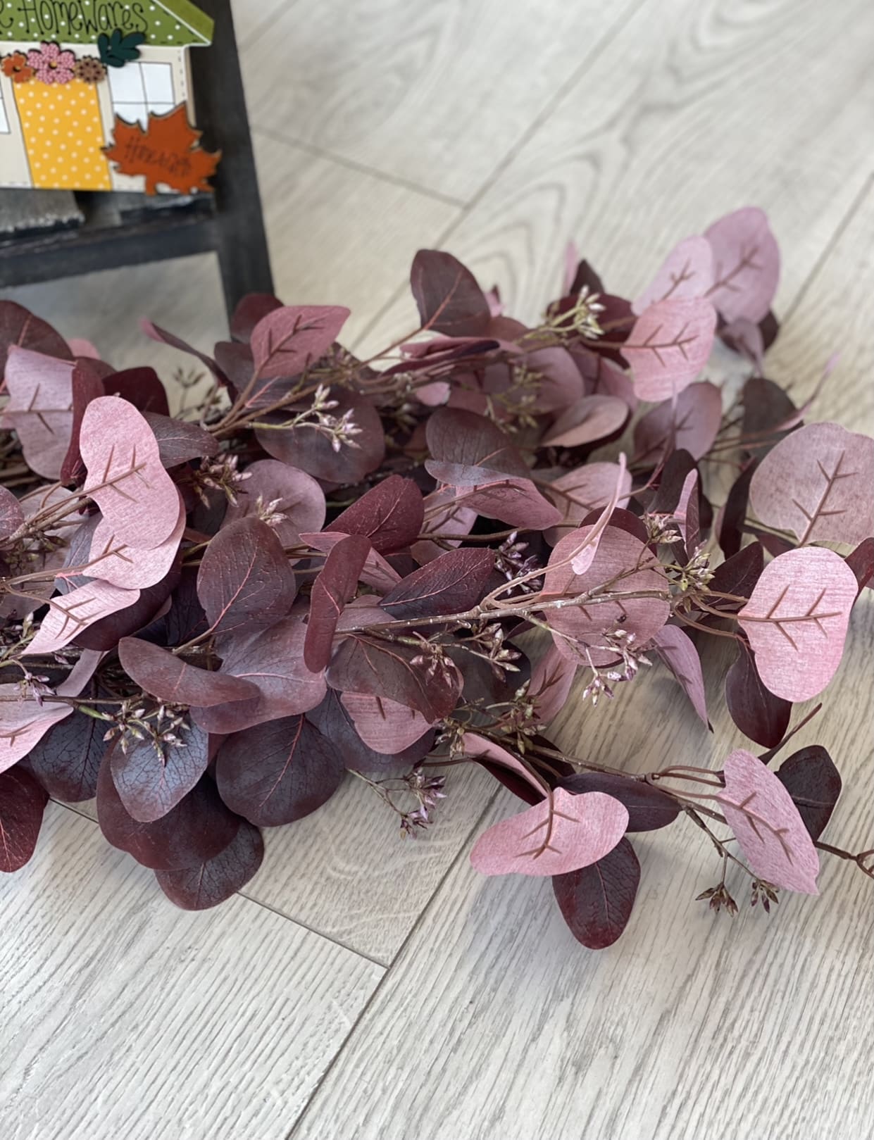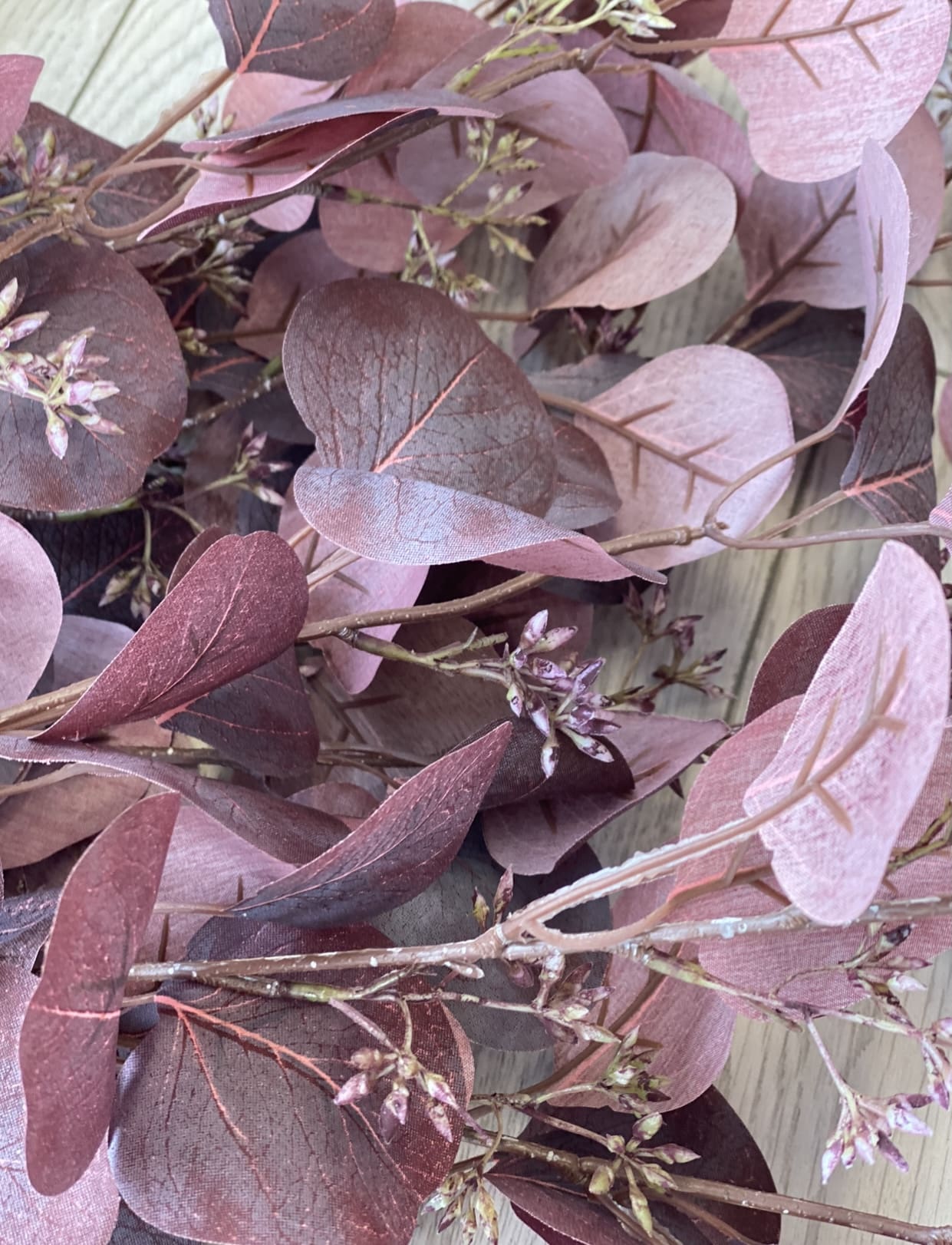 Large Faux Silk Artificial Eucalyptus Spray Burgundy – 110cm / 43 inches