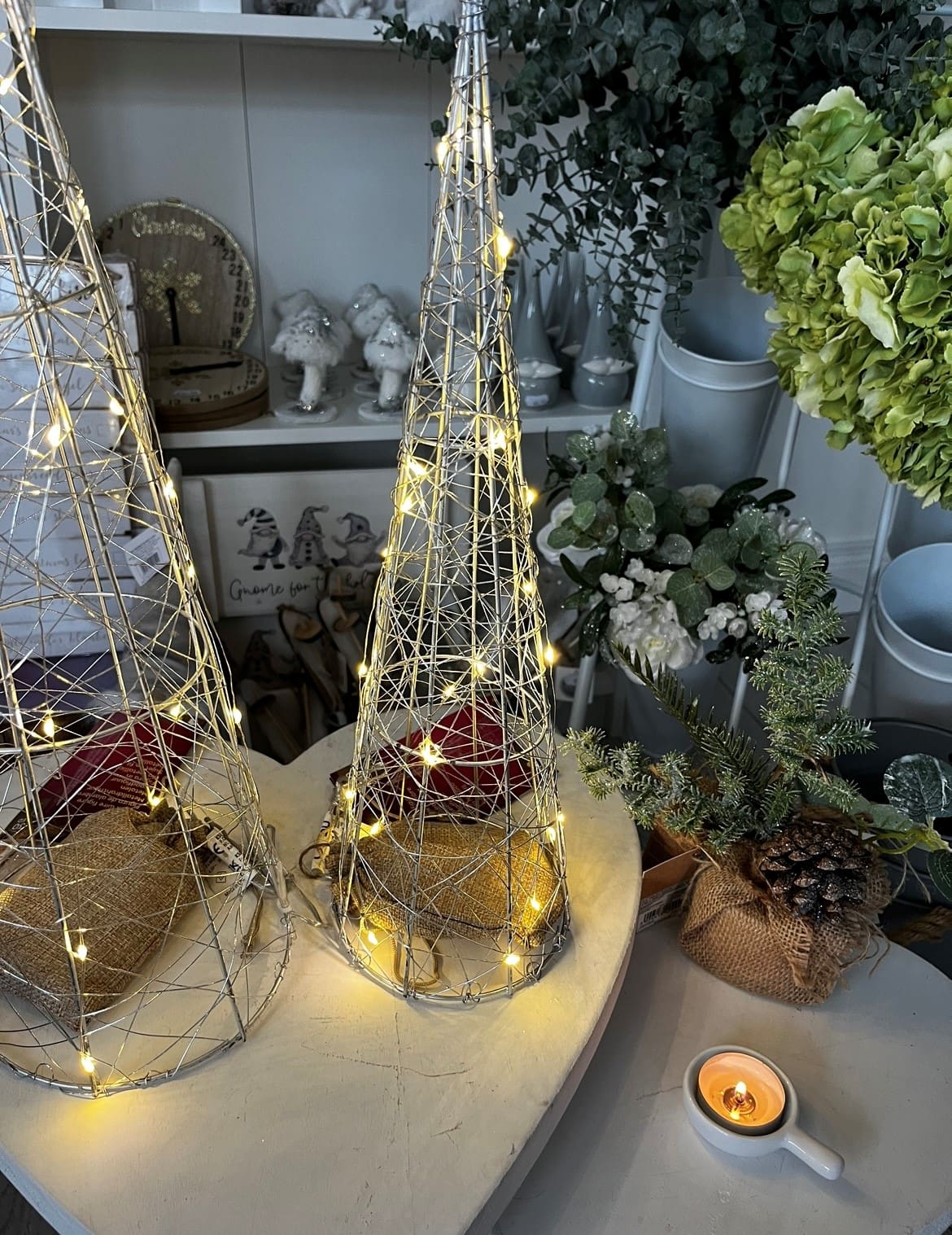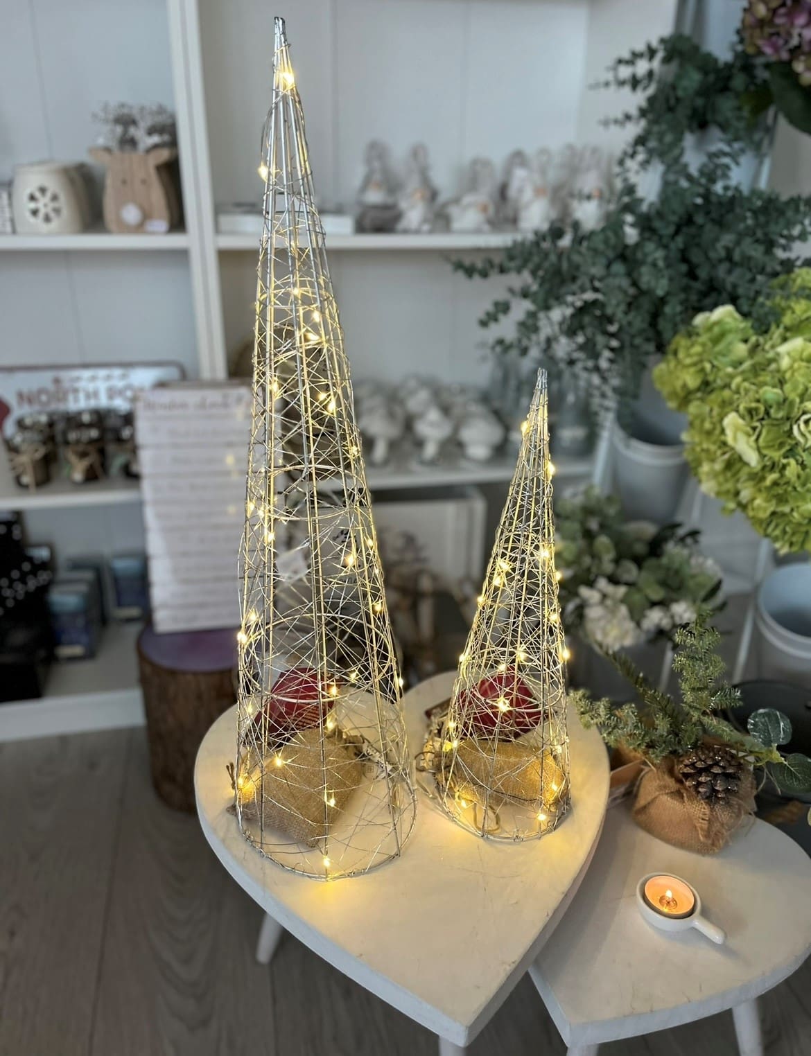 Standing Metal Frame In Cone Shaped Design With Micro LED Lights Wire All Over Batteries NOT included.