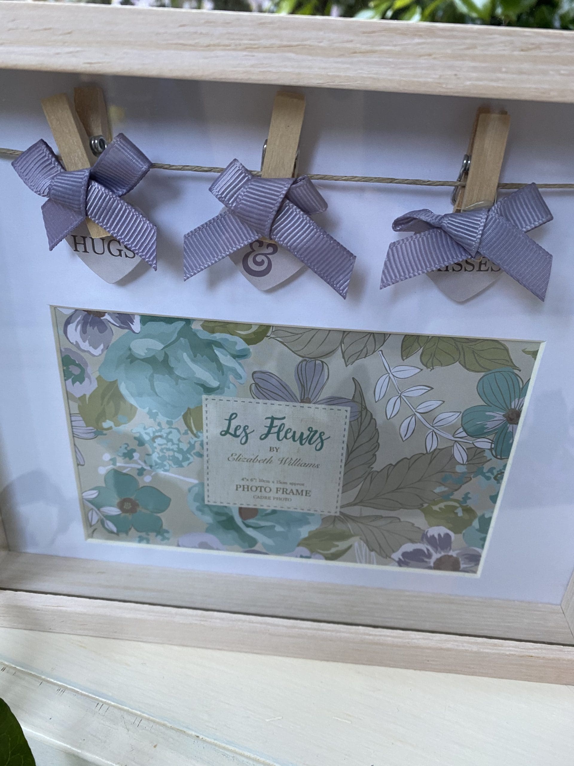 A beautiful assortment of wooden peg frames complete with bright colours and floral theme. 3 colours and sentiments, pink, purple & grey.