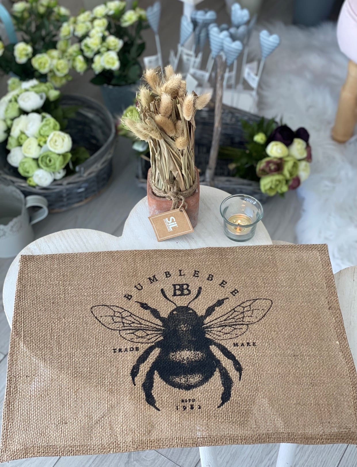 Linen Placemat With 2 Assorted Bee Print Designs On. Priced Individually 44 x 30 x 1cm Approx