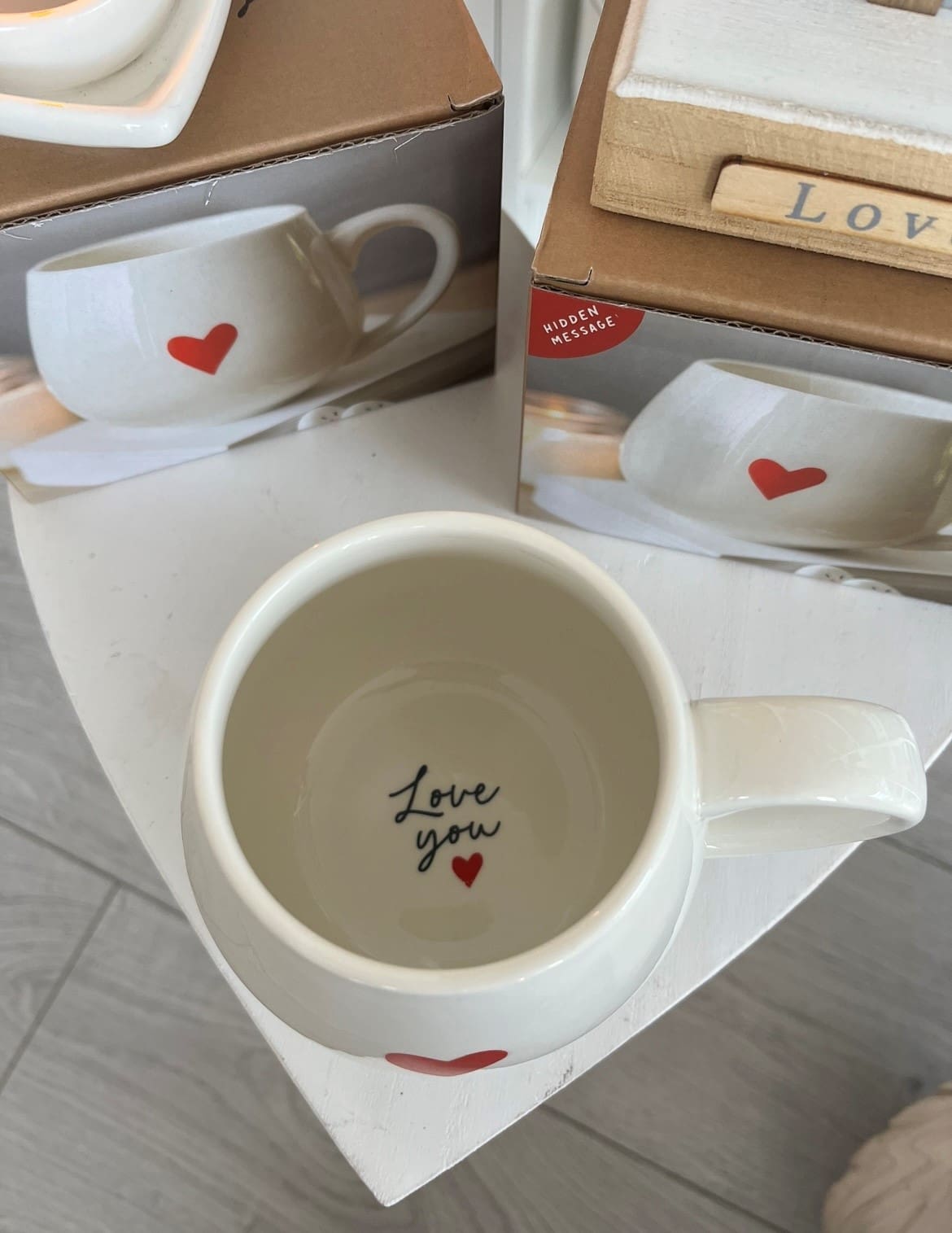 Let loved ones know you care with this charming ceramic heart mug. This whimsical design features a hidden ‘Love You’ message that’s revealed once the beverage is finished, making it a sweet gift for Valentine’s Day, Mother’s Day, anniversaries and more. 450ml capacity. Microwave safe. Hand wash only. Designed by Something Different Wholesale and part of the Heart to Heart range of Valentine’s Day gifts and home decor.