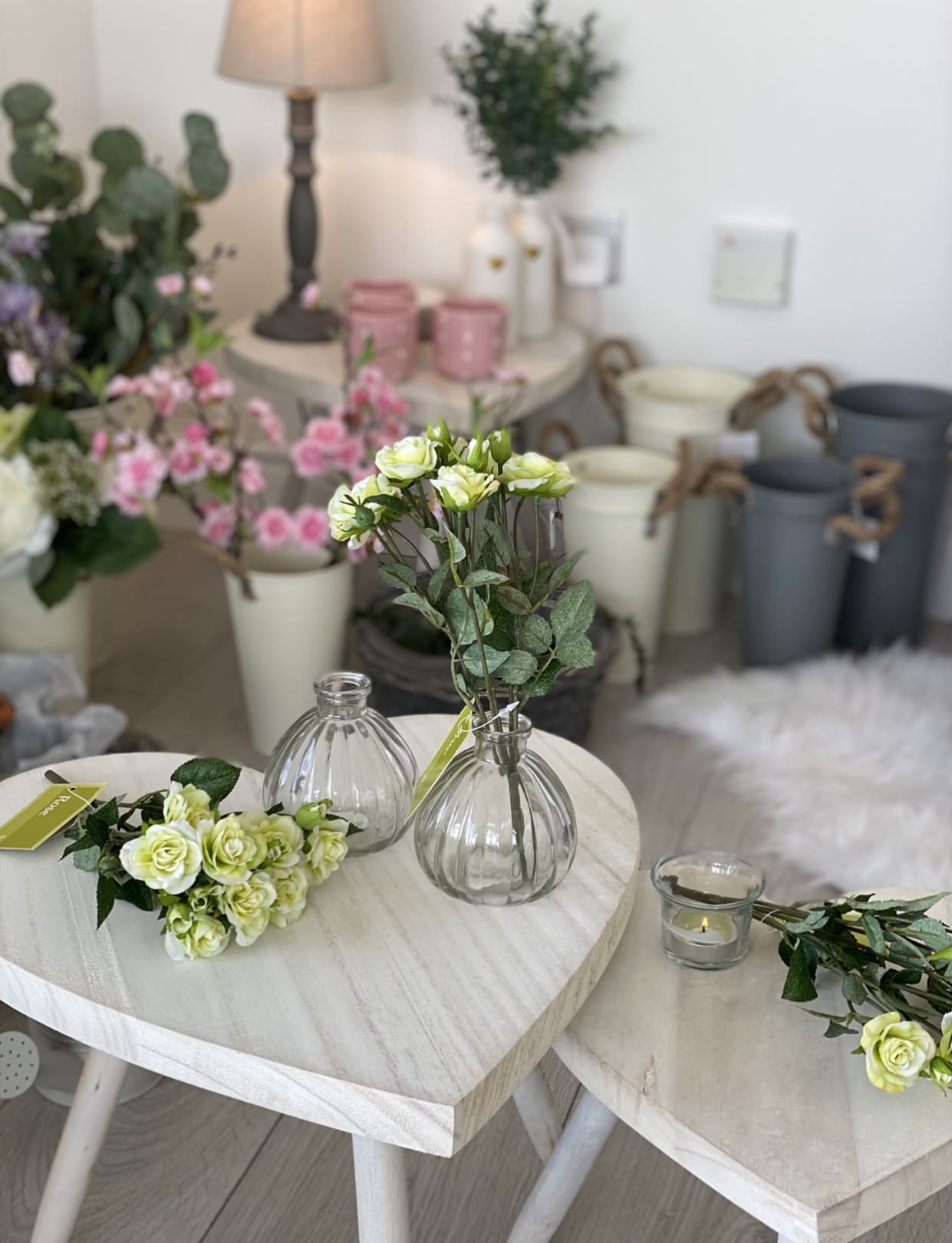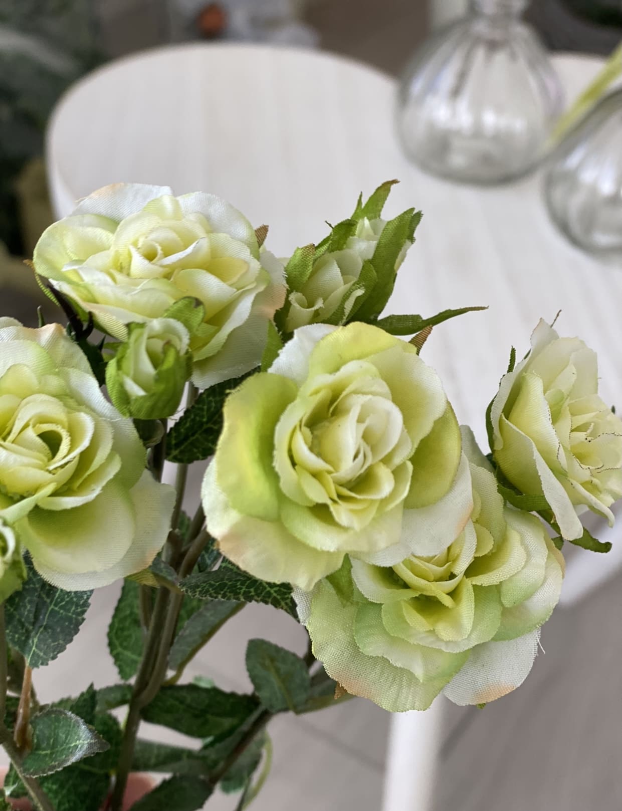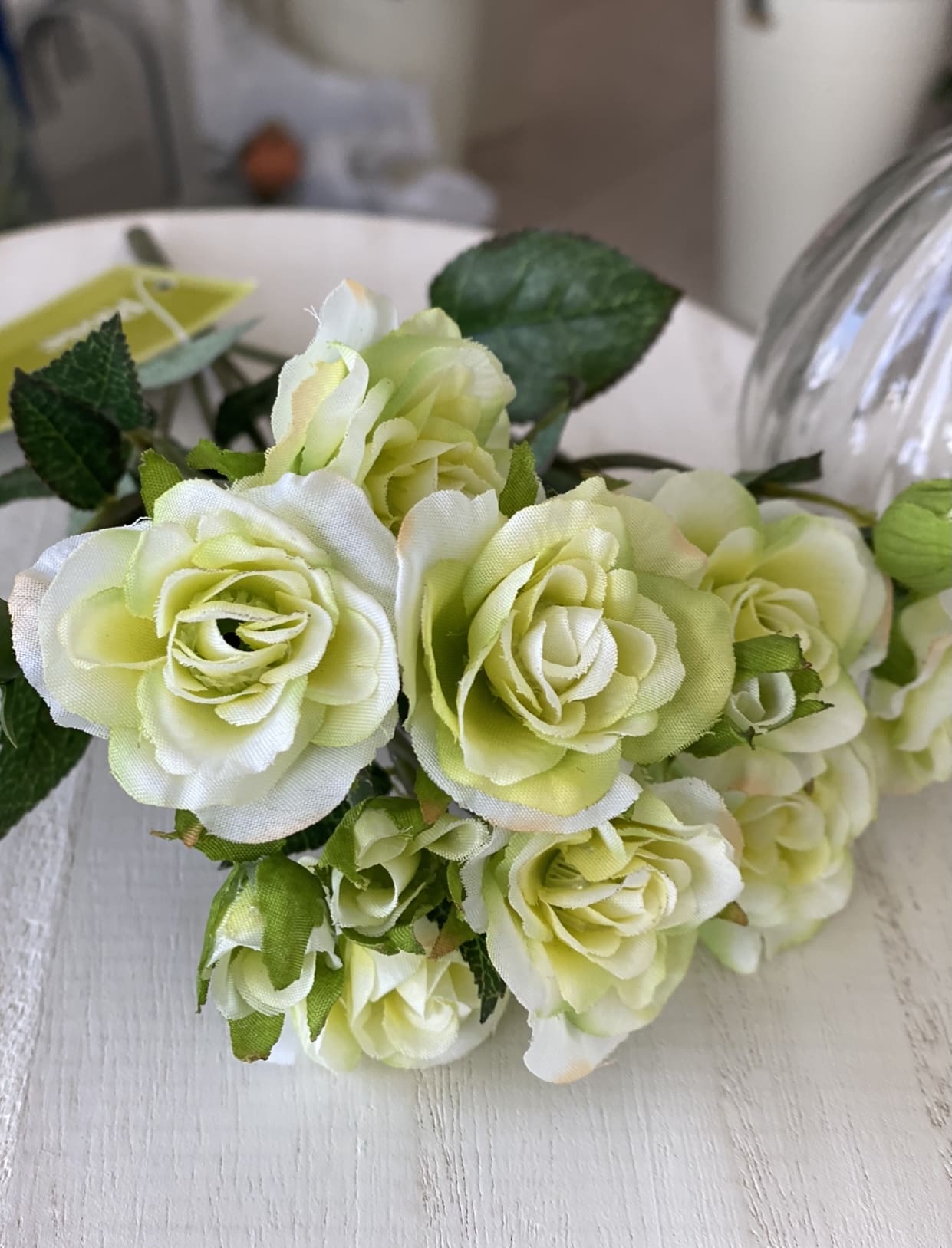 Beautiful Mini Rosebud Artificial Bunch 22cm Cream & Green