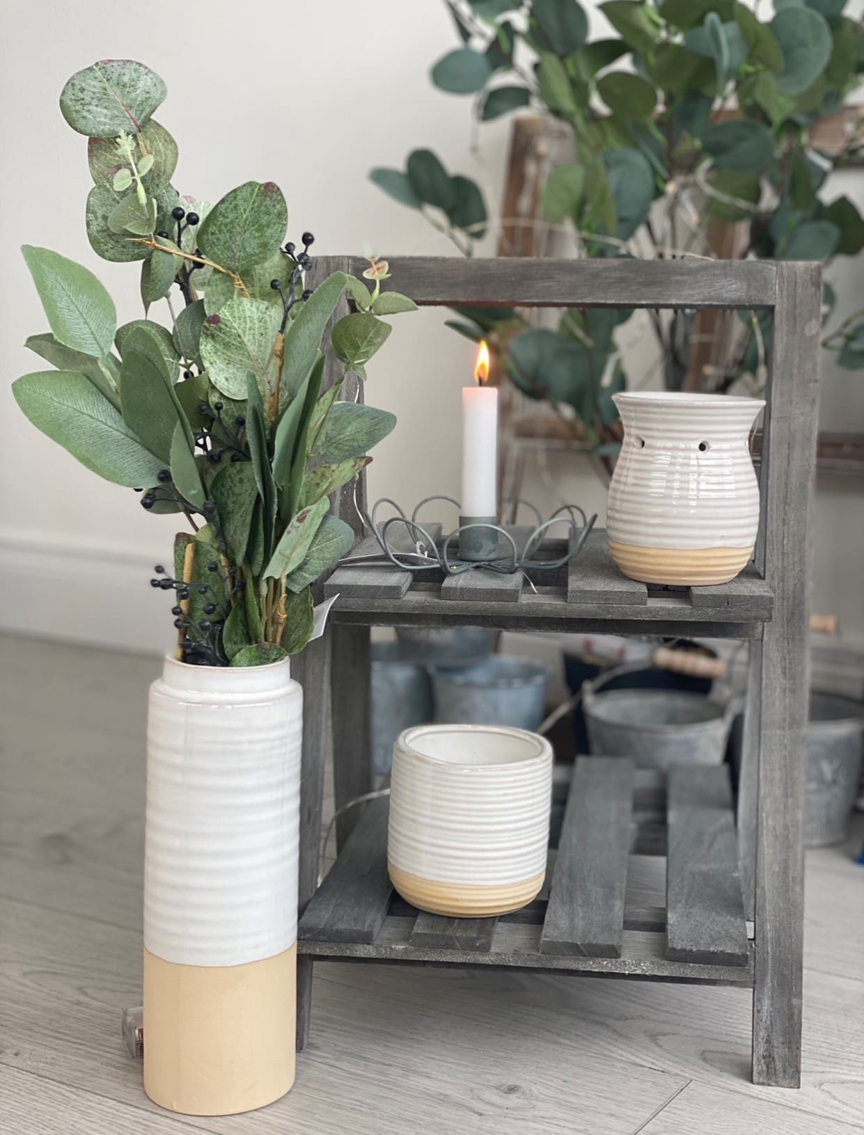 A beautifully simple themed ceramic vase set with a trendy two toned decal