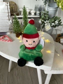 Meet this cute Chritsmas Elf, a cuddly soft toy from the Palm Pals range. In a festive red and green colour way It has a red and a cute smile.