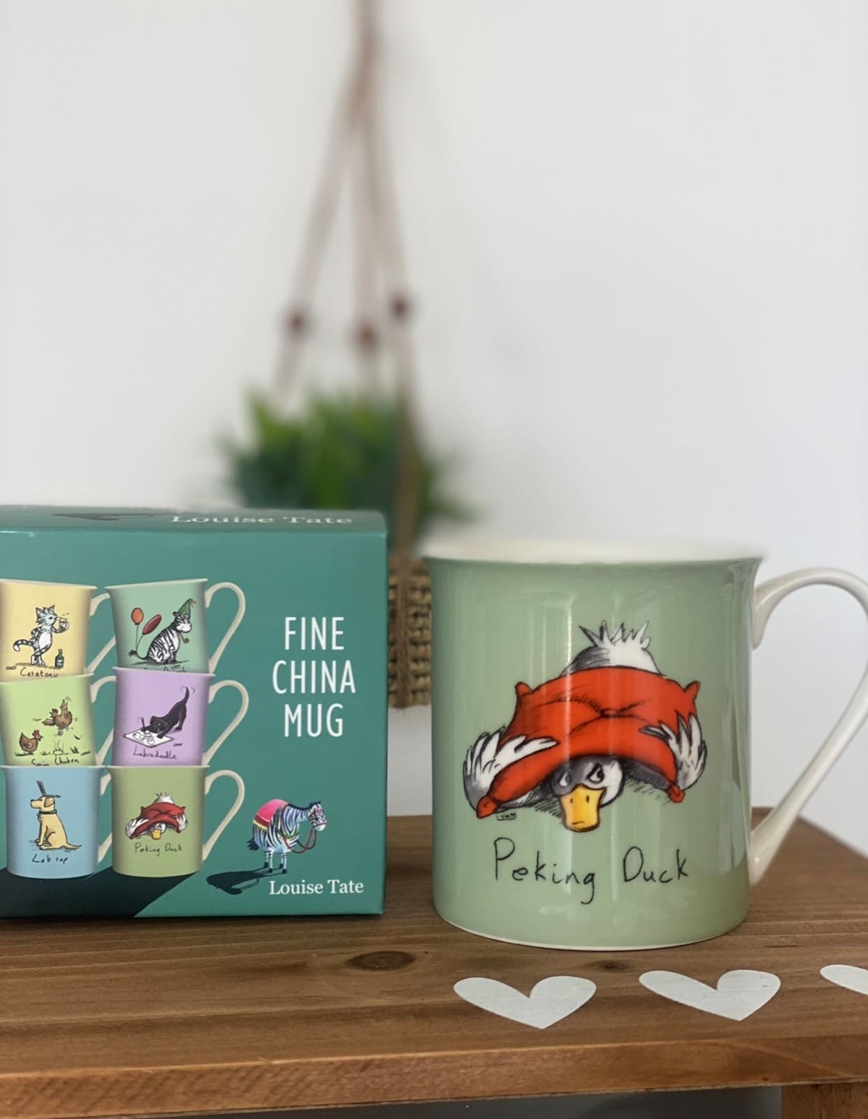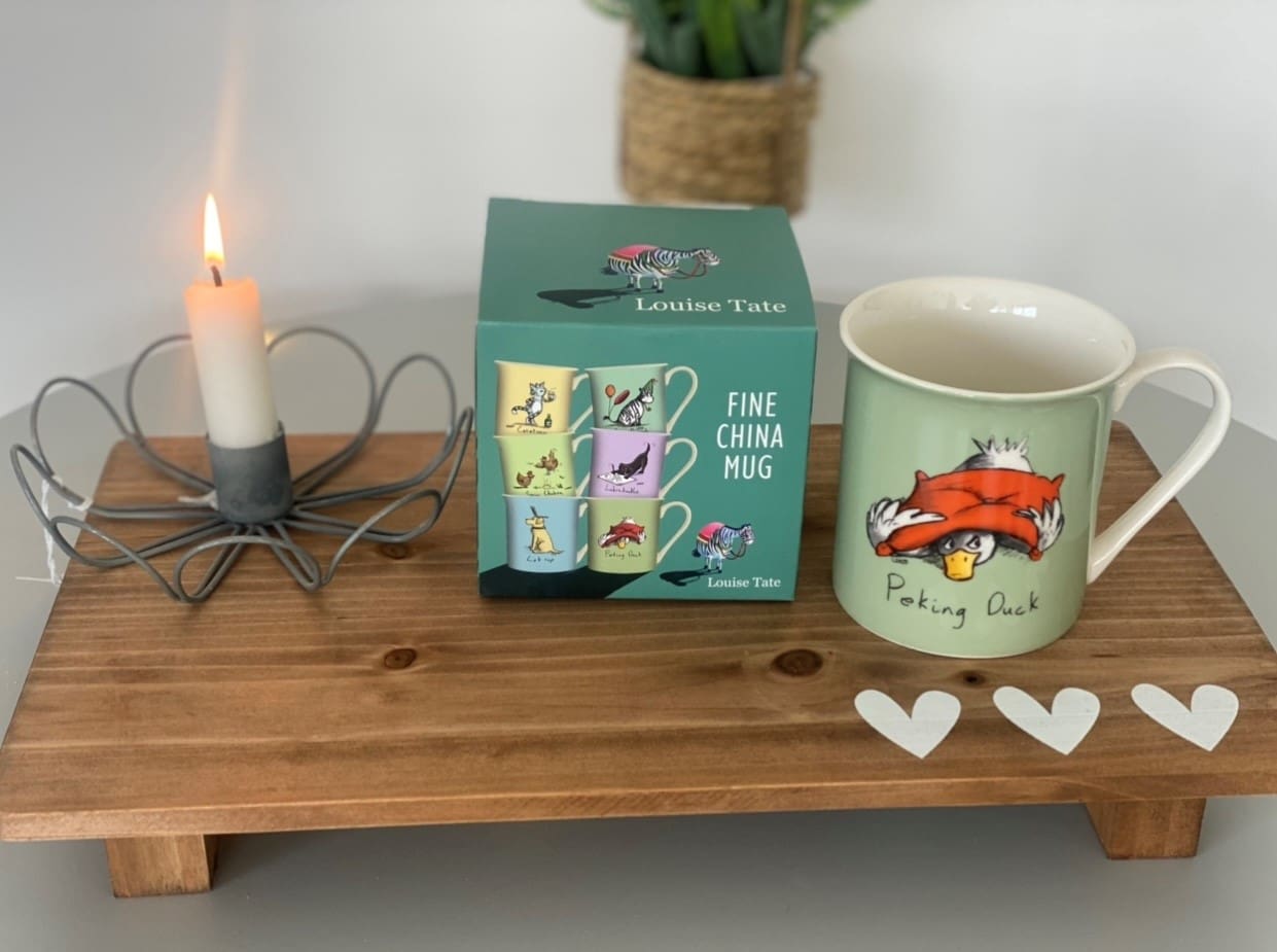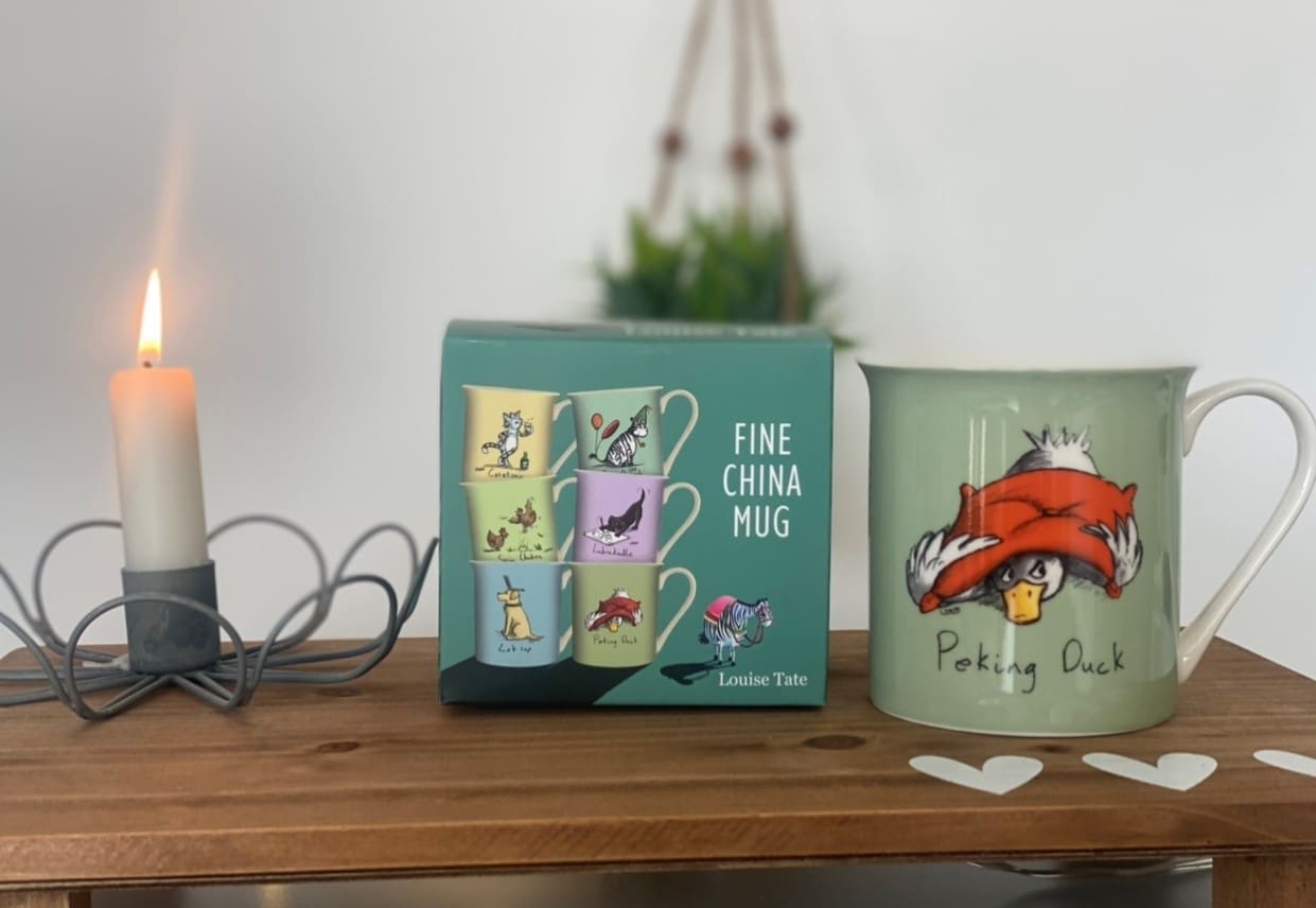 Part of the funny and colourful range from Louise Tate, a China Mug with a green decal and printed design