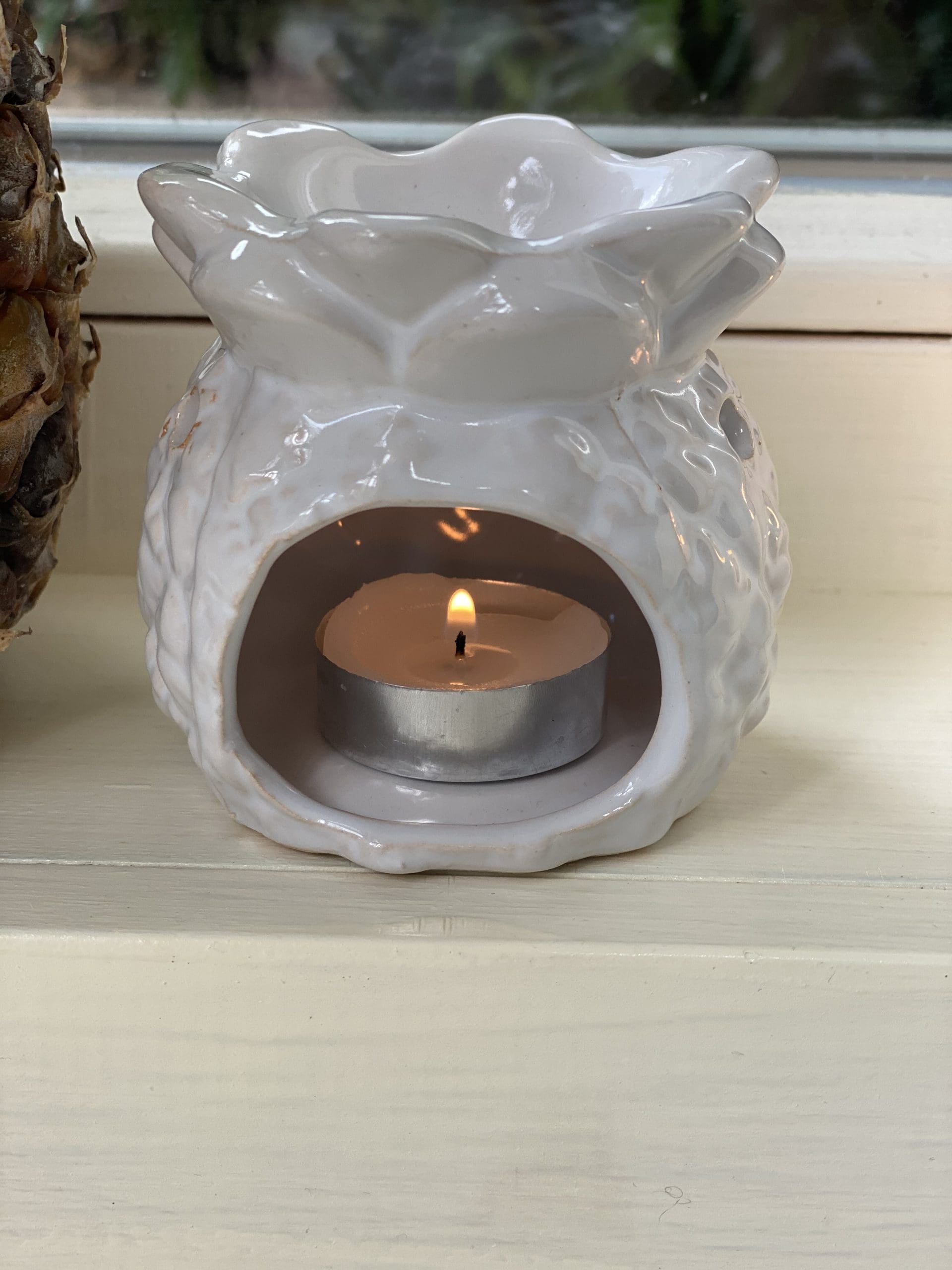 Round Ceramic Burner In A Novelty Pineapple Design With The Leaves Acting As The Dish. Size: 8cm