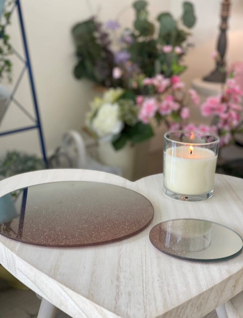 ROSE GOLD GLITTER CANDLE PLATE, 10CM & 20cm