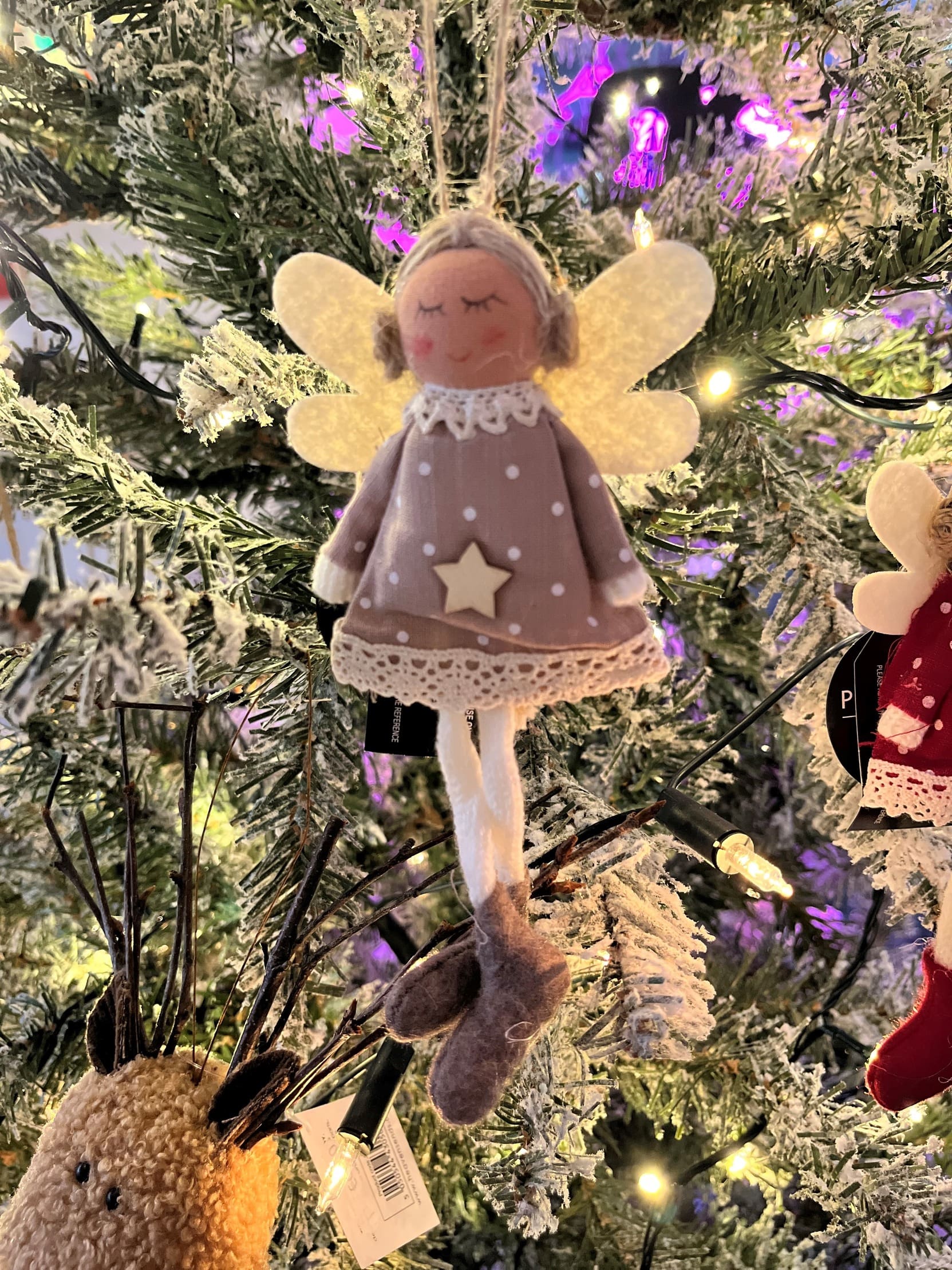 An assortment of 2 fairy hanging decorations with wings, star motif and polka dot details. 2 Assorted designs. Priced individually. Size 15cm