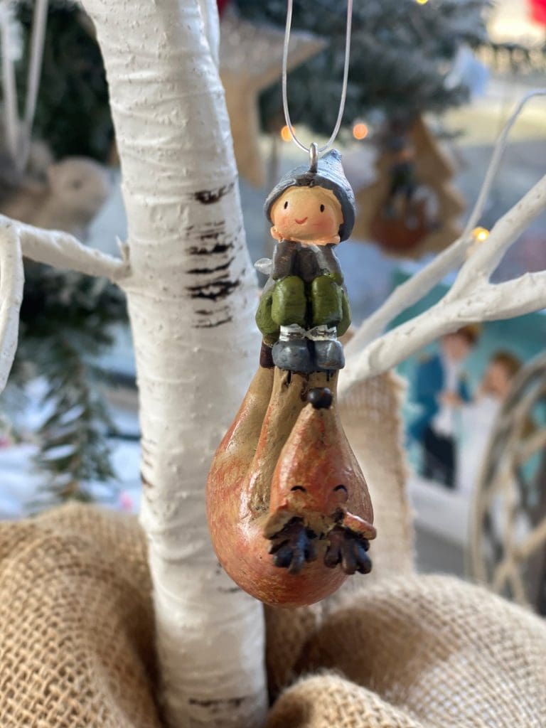 Red Hanging Wooden Tree and Star Red wooden star and tree decoration with a gingham pattern.