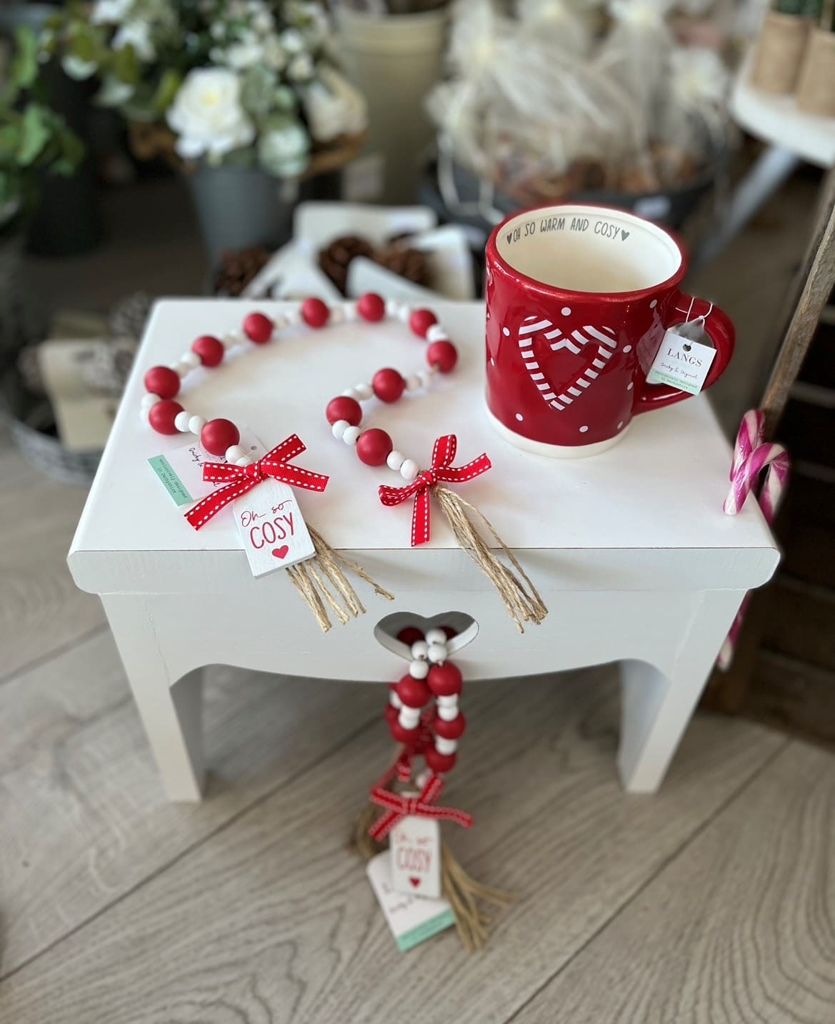 Red & White Oh So Cosy Decorative Beads Size : 80 cm