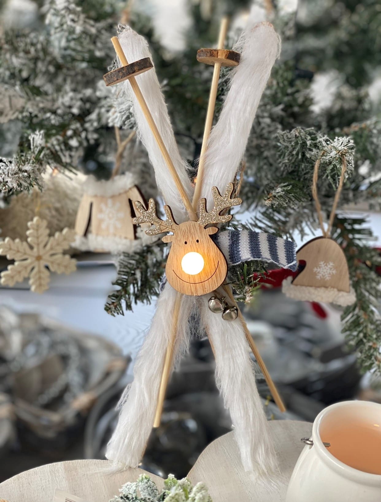 Reindeer Skis Hanger w/Light Up Nose Please note : Batteries not included. 2 x LR2032 required