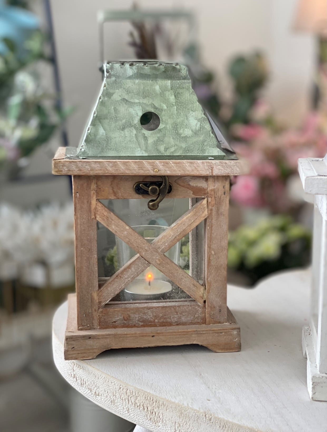 Adorable Little Firwood Lanterns, with Glass Panes and Metal Roofs, Available in 3 Assorted Colours (Priced Individually).